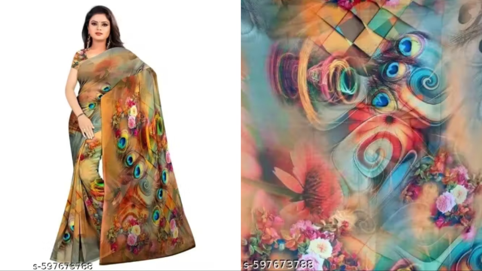मल्टी कलर जॉर्जेट साड़ी