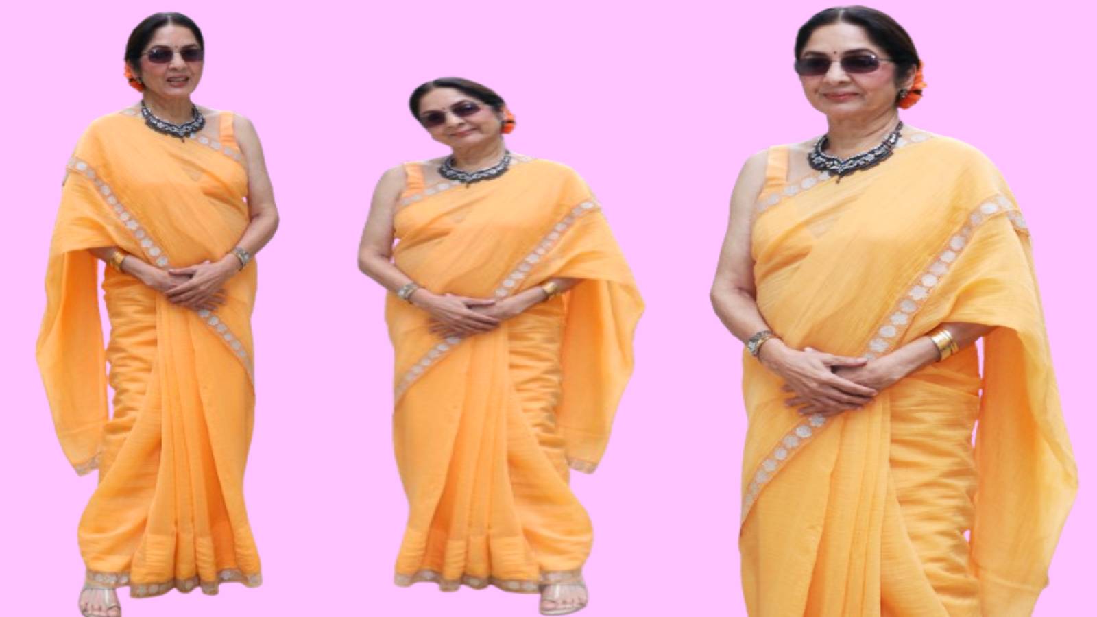प्लेन शिफॉन साड़ी में नीना गुप्ता