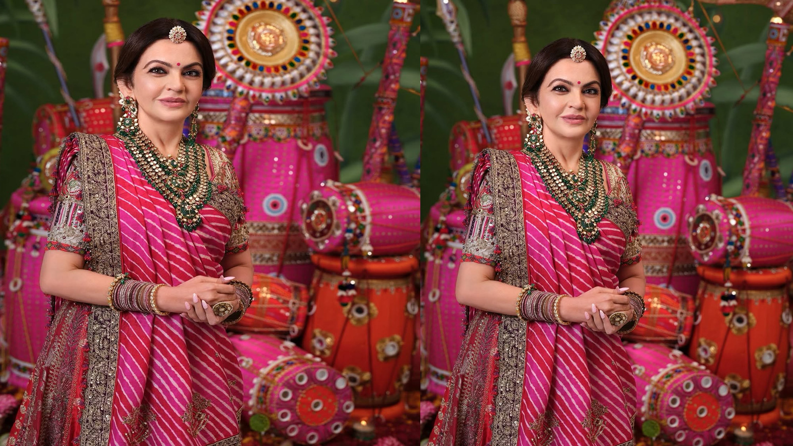 लहंगे के साथ नीता ने गुलाबी रंग का लहरिया दुपट्टा कैरी किया, जिसे पारंपरिक टाई-डाई तकनीक से तैयार किया गया था। इसमें लगाए गए मोटिफ्स और वाइब्रेंट कच्छी टेक्सटाइल्स ने गुजरात की लोक संस्कृति और मां अंबा के प्रति श्रद्धा को बखूबी दिखाया गया।