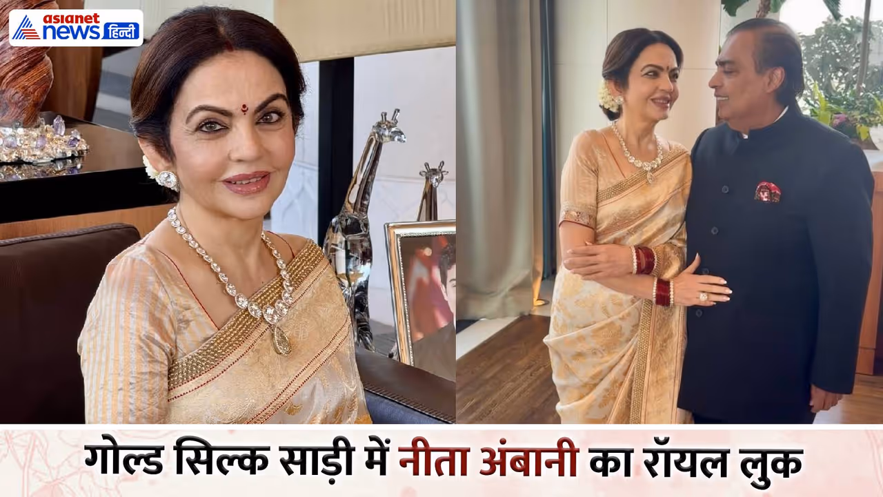 आइवरी गोल्ड सिल्क साड़ी में सजी नीता अंबानी