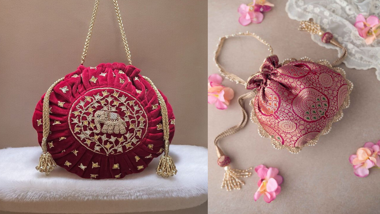 3.हैवी वर्क ब्लाउज से बनाएं क्लच या पोटली बैग