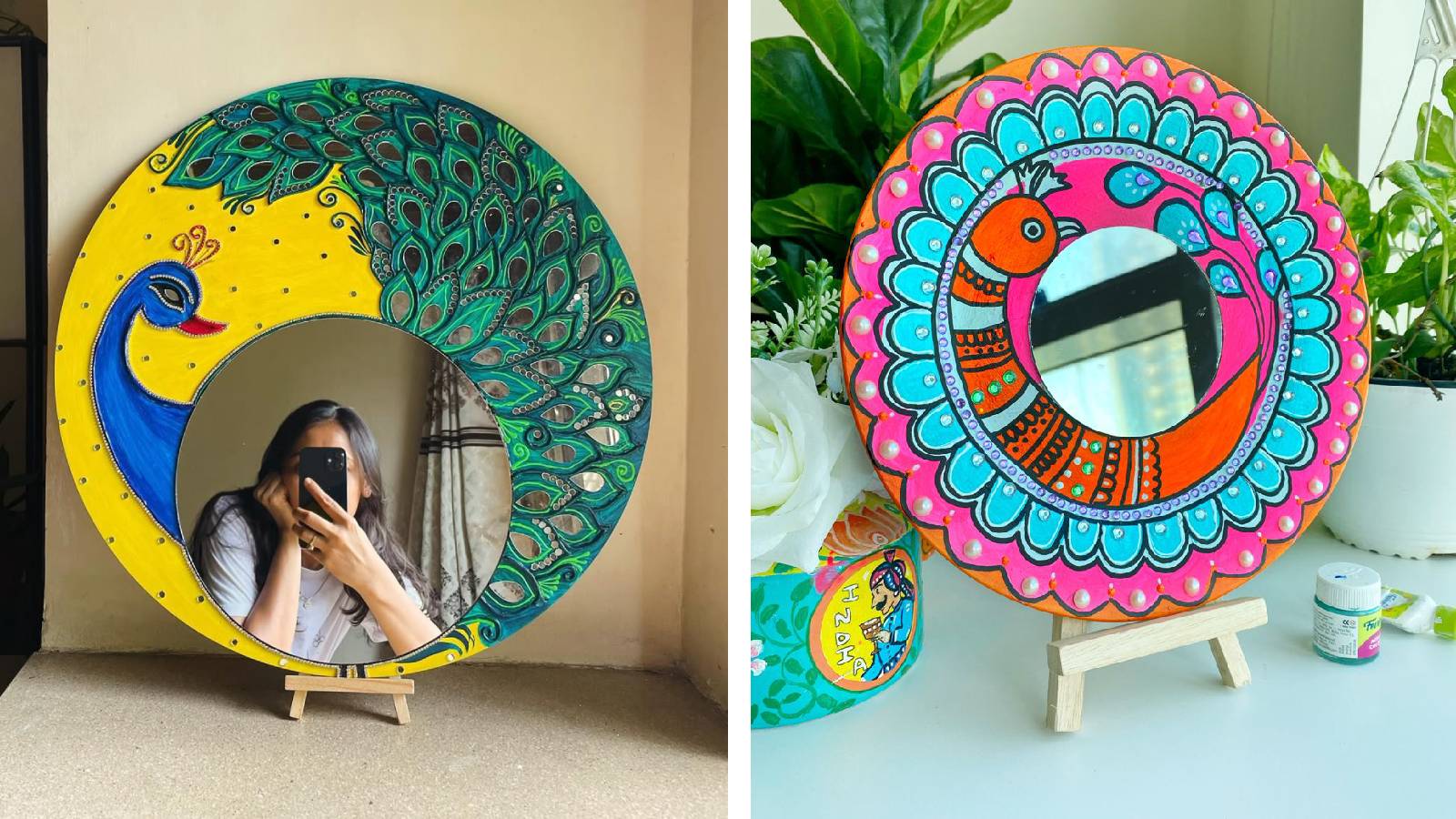 आप प्लास्टिक की प्लेट को अपने मनपसंद डिजाइन से सजाने के बाद उसमें छोटा मिरर लगा सकती हैं। किनारो को स्टोन, बीड्स या ग्लिटर से सजा लें। यह मिरर प्लेट डेकोर दीवार को रॉयल के साथ एलिगेंट लुक देगा। इसे बनाना बेहद आसान होता है और कम खर्चे में आप बेहतरीन डेकोरेटिव पीस घर में ही तैयार कर लेते हैं।