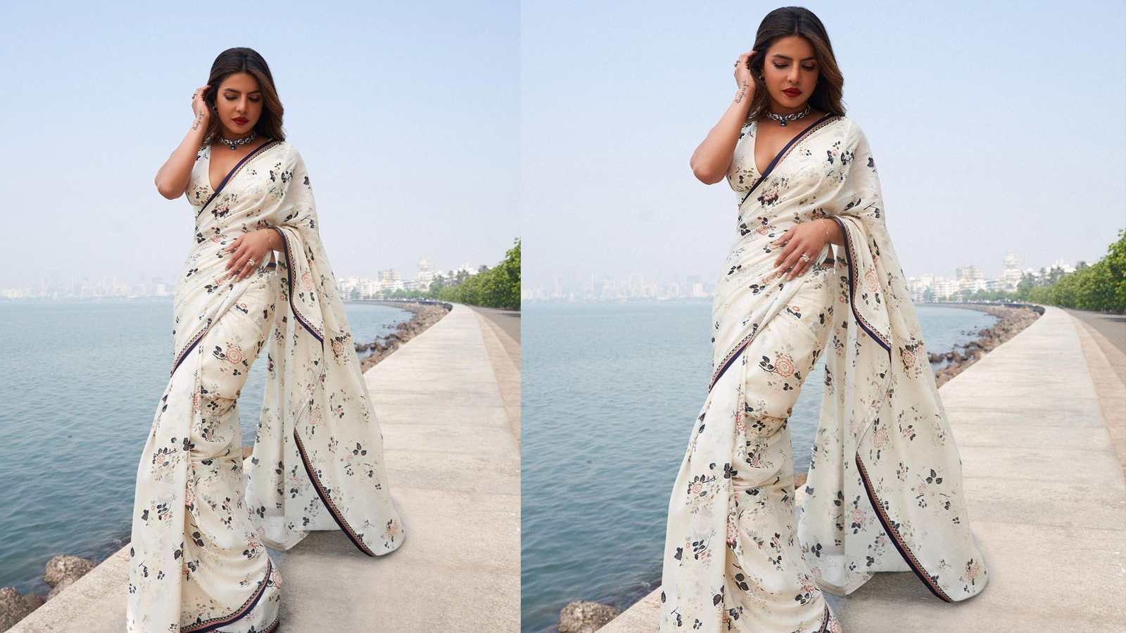 सिंपल और क्लासिक लुक के लिए आप प्रियंका चोपड़ा के इस साड़ी लुक को देख सकती हैं। ऑफ व्हाइट साड़ी के बॉर्डर पर लेस लगाया गया है। वहीं पूरी साड़ी पर ब्लैक प्रिंट वर्क है। इस तरह की साड़ी आपको 2-3 हजार रुपए में मिल जाएंगी।