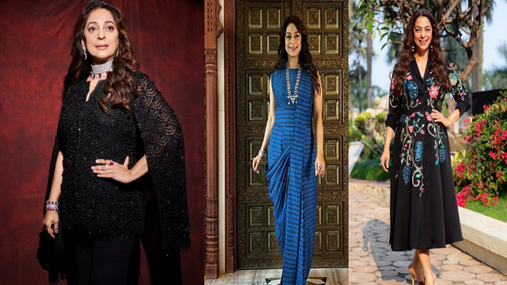57 साल की जूही चावला (juhi chawla) भी अपने फैशन में एक्सपेरिमेंट करना पसंद करती हैं।ब्लैक गाउन , शॉर्ट ड्रेस और रेडी टू वियर साड़ी में वो अपनी विटेंज खूबसूरती फ्लॉन्ट करती हैं।
