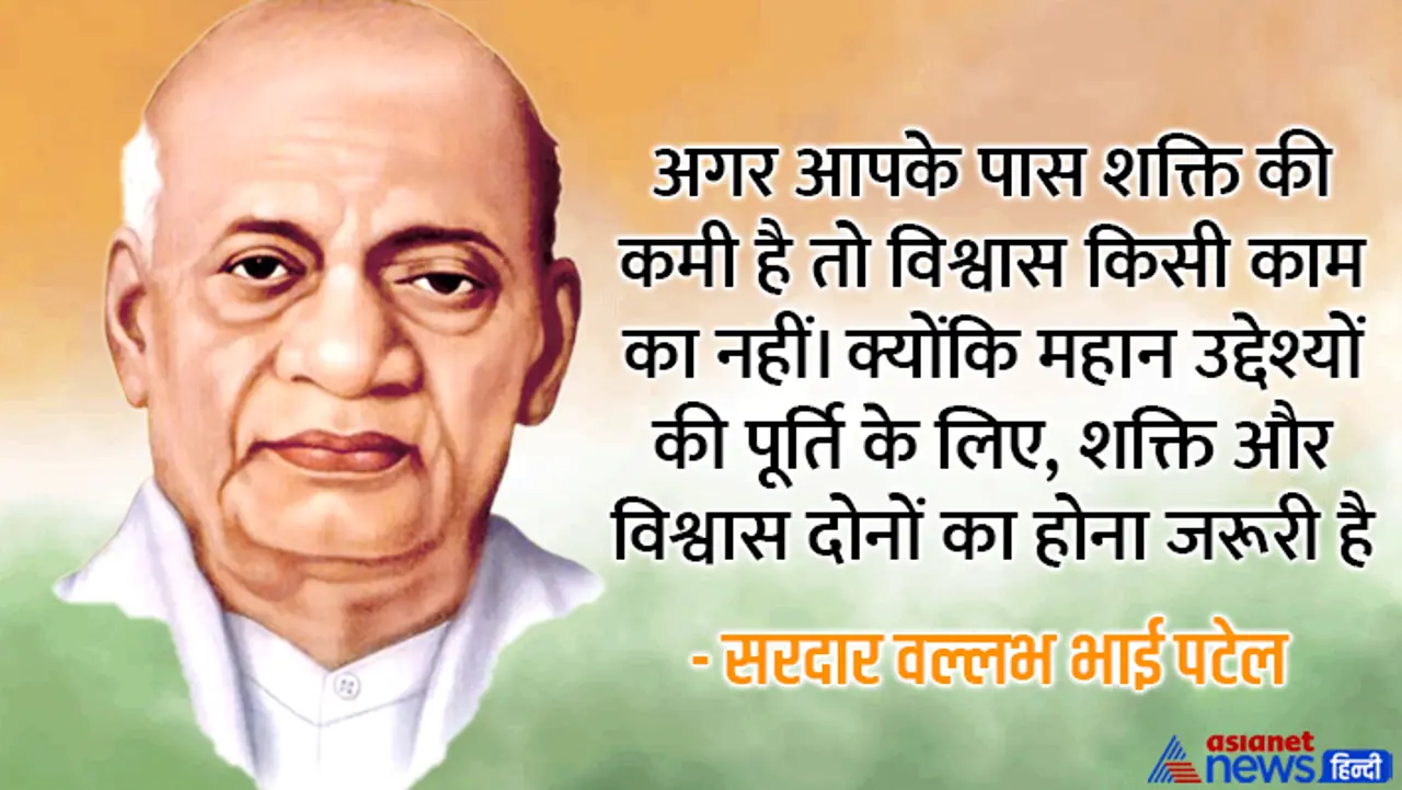 अगर आपके पास शक्ति की कमी है तो विश्वास किसी काम का नहीं। क्योंकि महान उद्देश्यों की पूर्ति के लिए, शक्ति और विश्वास दोनों का होना जरूरी है- सरदार वल्लभ भाई पटेल