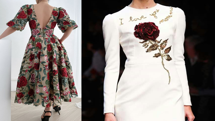 4. गुलाब प्रिंट या वर्क ड्रेस