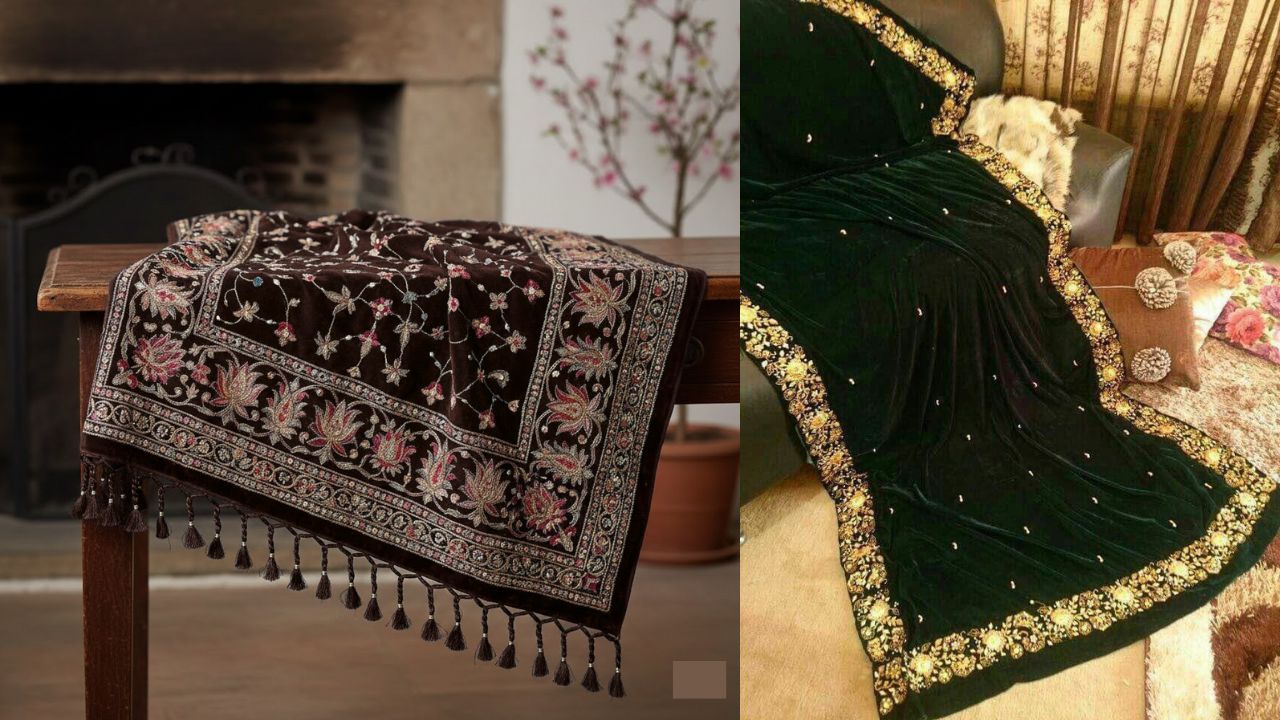 वेलवेट शॉल की ये डिजाइन आपको सिंपल और हैवी एंब्रॉयडरी दोनों के साथ मिल जाएगी, ये पहनने में बहुत स्टाइलिश और क्लासी लगने वाली डिजाइन है। जब बात लग्जरी और गर्माहट की आती है, तो वेलवेट (Velvet) की शॉल का कोई मुकाबला नहीं। स्कूल के फंक्शन या फिर ऑफिस की पार्टी या पूजा है, तो आप इस तरह के सुंदर वेलवेट के शॉल ओढ़ सकती हैं।