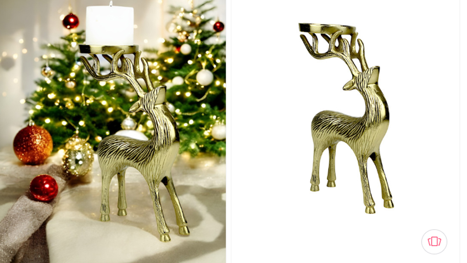 लिविंग रूम में अगर आप लग्जरी आइटम जोड़ना चाहती हैं, तो मिंत्रा पर मिलने वाले रेनडियर कैंडल होल्डर को देख सकती हैं। गोल्ड एल्युमीनियम मेटैलिक गार्डन मीडियम शोपीस पर यह साइट 74% डिस्काउंट दे रहा है। दाम की बात करें तो यह 776 रुपए में मिल रहा है।
