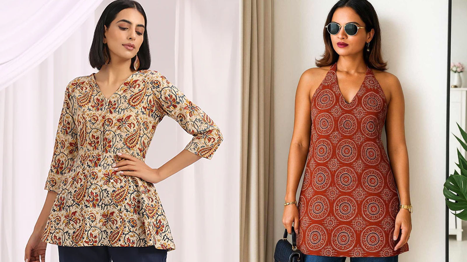 राजस्थानी और जयपुरी ब्लॉक प्रिंट शॉर्ट कुर्तियां हर त्योहार के लिए बेस्ट मानी जाती हैं। ये कुर्तियां हल्के रंगों में गोल्डन प्रिंट के साथ आती हैं और 500 रुपये में कई ऑनलाइन स्टोर्स पर आसानी से मिल जाती हैं। इन्हें आप दुपट्टे के साथ पेयर कर सकती हैं ताकि लुक और भी त्यौहारी लगे।