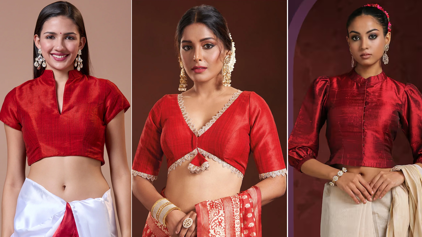 अगर आप हल्की और कंफ़र्टेबल ड्रेसिंग पसंद करती हैं तो सिंदूरी रंग में पफ स्लीव्स वाला कॉटन ब्लाउज बेस्ट ऑप्शन है। ये पीली या ग्रीन बॉर्डर वाली कॉटन साड़ी के साथ पहनने पर बहुत सुंदर लगता है। खासकर गर्मी और उमस में पूजा-पाठ के दौरान यह स्टाइल और कम्फर्ट दोनों देगा।