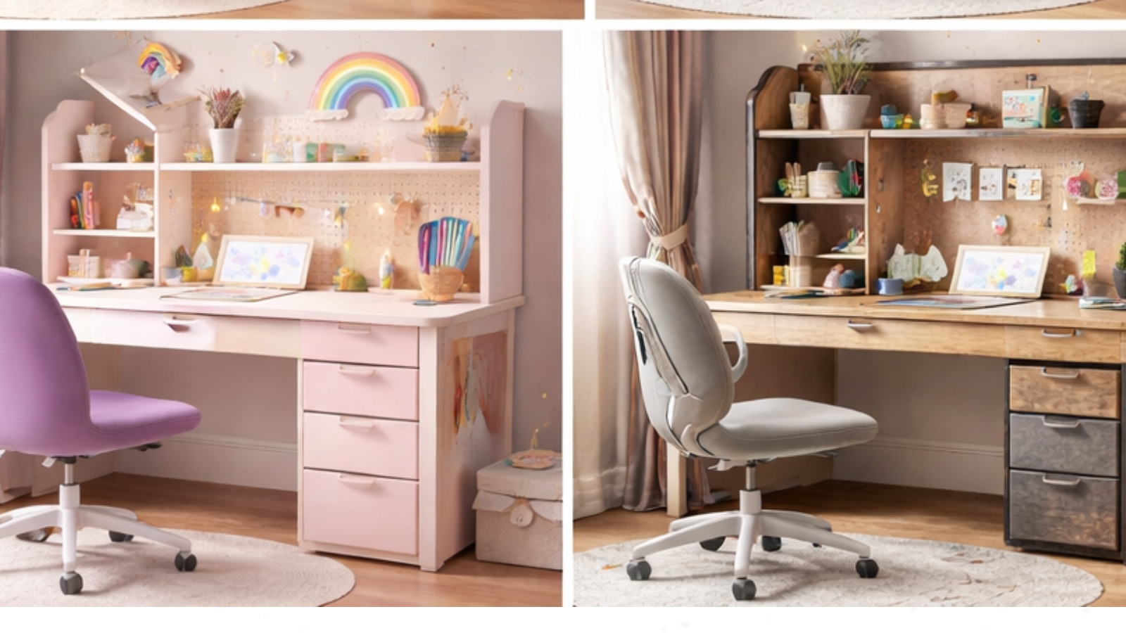इसमें लकड़ी और डार्क टोन का इस्तेमाल है। बड़े बच्चों यानी क्लास 6+ या टीनएजर्स के लिए अच्छा है। ज्यादा मजबूत और लंबे समय तक चलने वाला। सीरियस स्टडी वाला फील देता है, जिससे बच्चा पढ़ाई को लेकर जिम्मेदार बनता है।