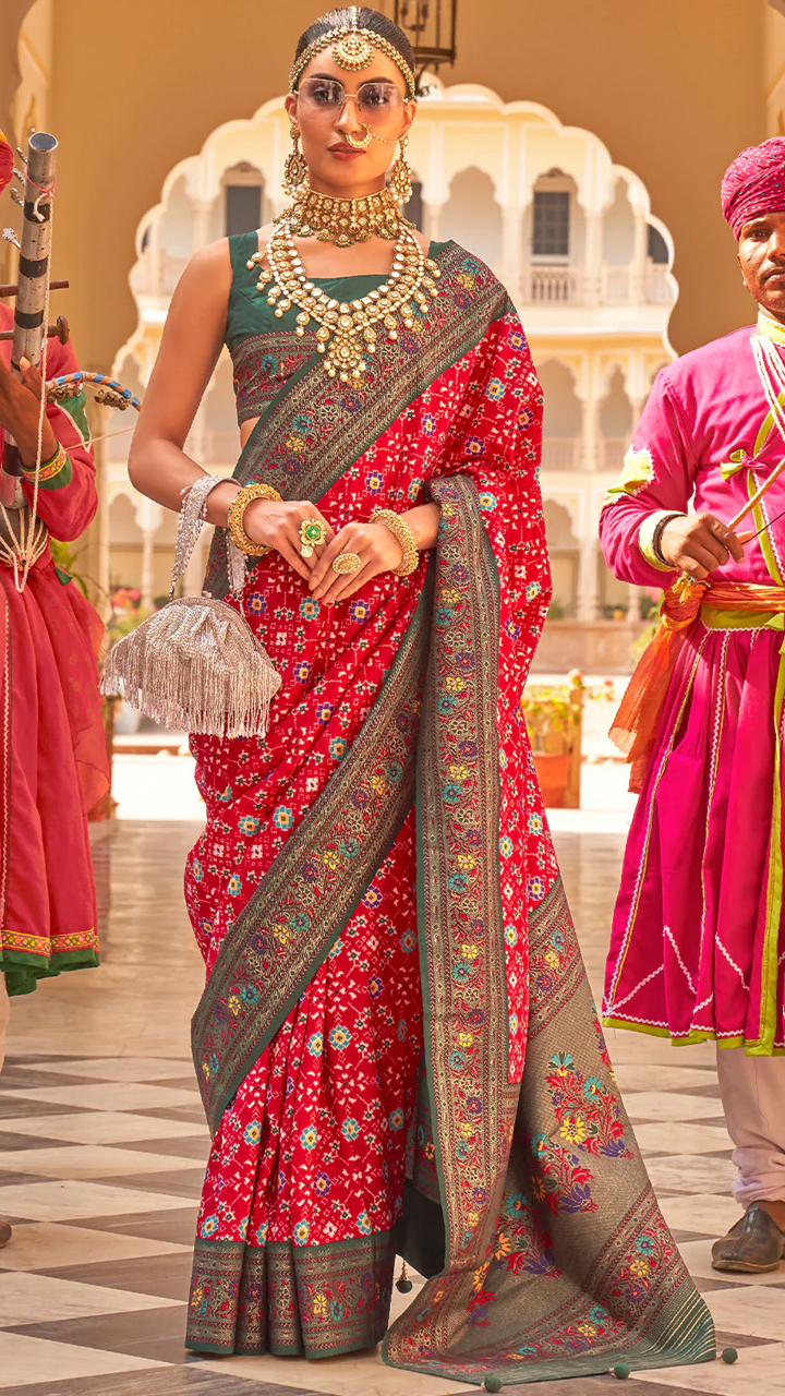 कंट्रास्ट कलर में पहनें सिल्क साड़ी ( Contrast Color Silk Saree Blouse)
