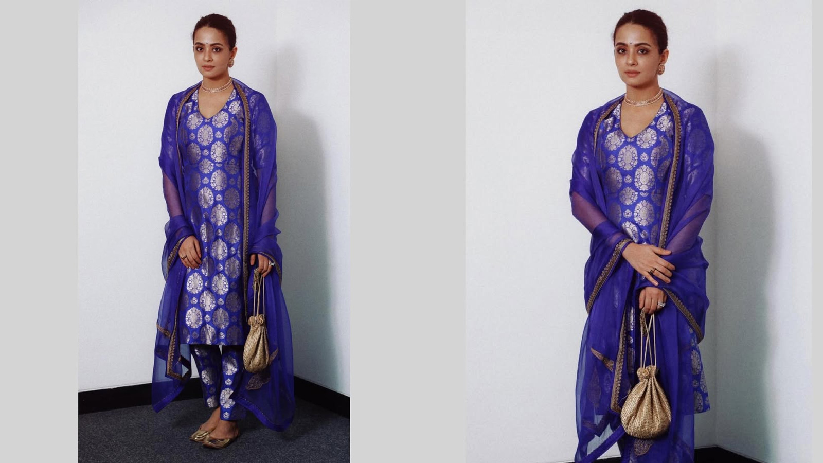 अगर आप रक्षाबंधन पर थोड़ा ट्रेडिशनल लुक चाहती हैं, तो सुरवीन चावला के ब्लू बनारसी सूट को रिक्रिएट कर सकती हैं। एक्ट्रेस ने इस सूट को फिटेड पैंट के साथ पहना है। शिफॉन दुपट्टा और माथे पर बिंदी के साथ लुक कंप्लीट किया है। इस तरह के सूट आप टेलर से सिलवा भी सकती हैं। बॉडी फिटिंग सिल्क सूट काफी सुंदर लगता है।