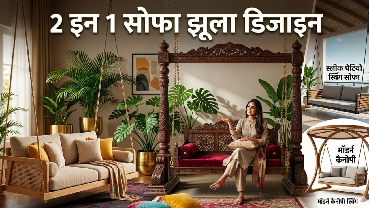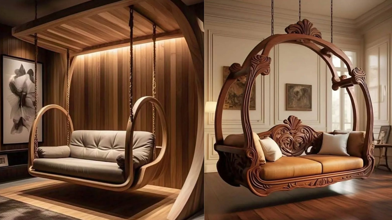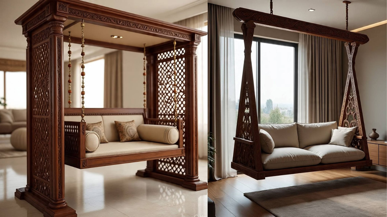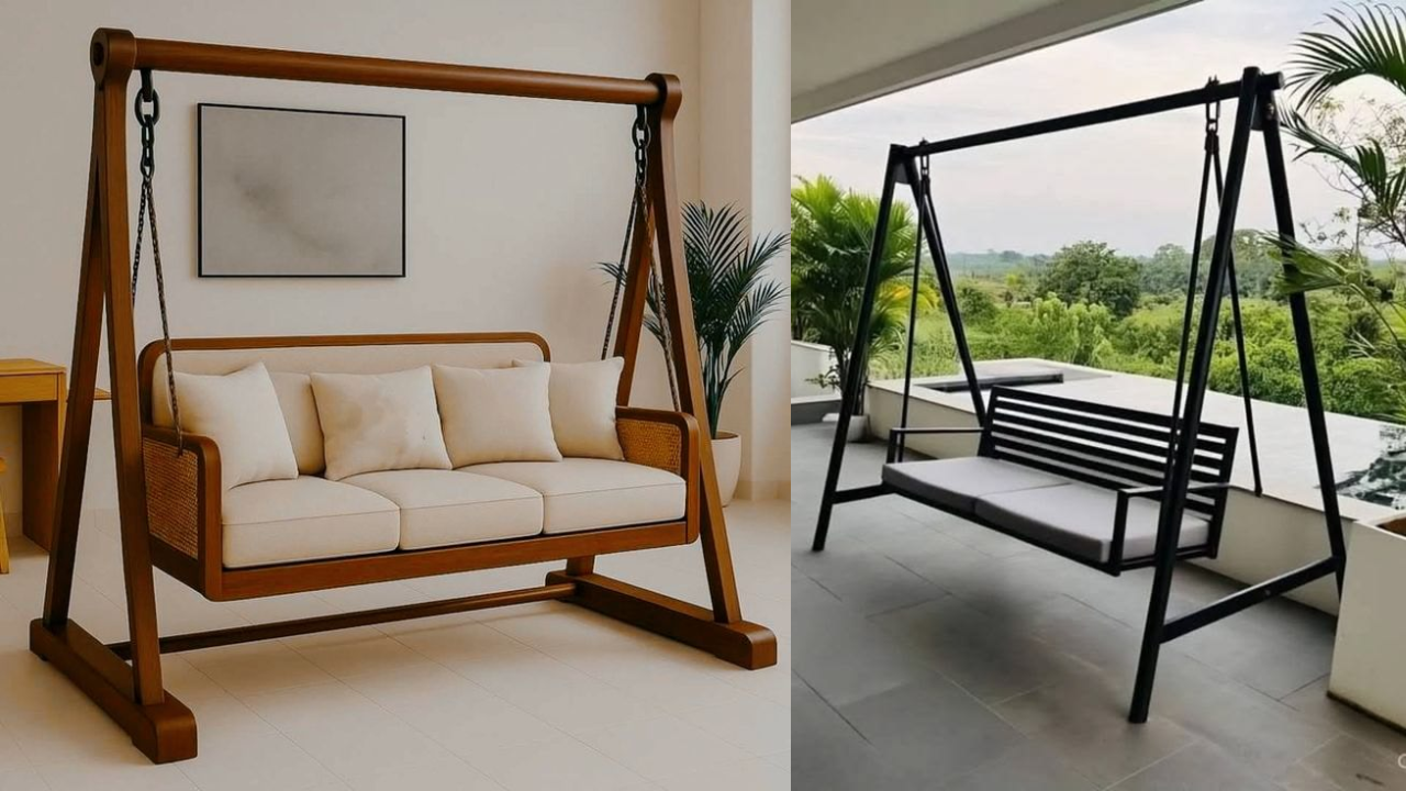 Swing Jhula Sofa Set Designs Photos: लिविंग रूम को स्टाइलिश और यूनिक बनाने के लिए ट्रेंडी स्विंग सोफा सेट देखें। मॉडर्न, रॉयल और स्पेस सेविंग झूला सोफा आइडियाज जो हाल की खूबसूरती बढ़ाने के साथ घर को देंगे लग्जरी फील।
