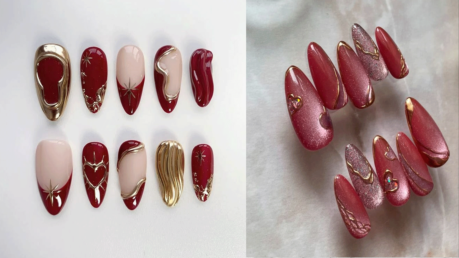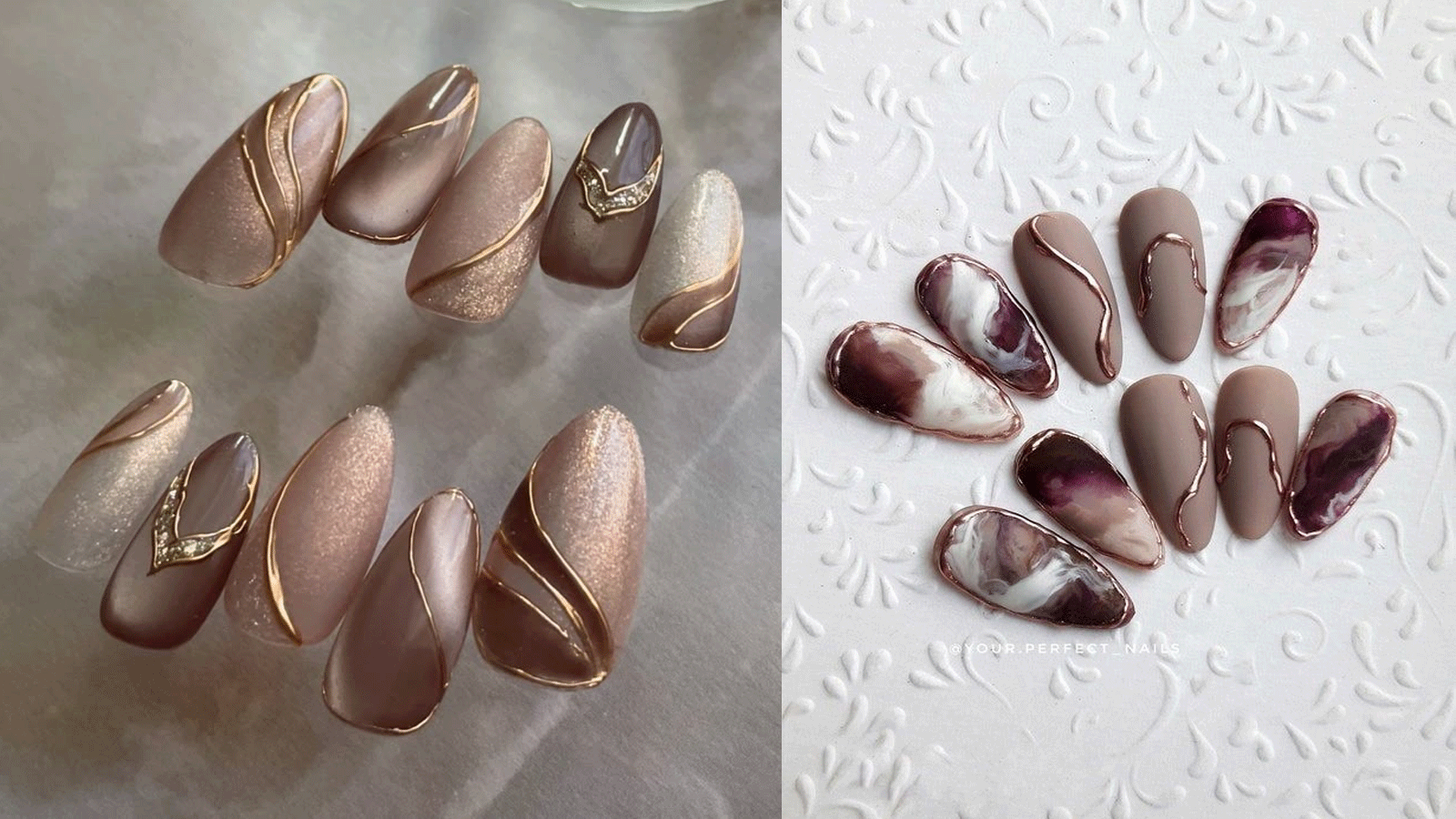 अगर आप डार्क फेक नेल ट्राई करना चाहती है तो ये डिजाइंस बेस्ट हैं। इसमें अलग-अलग पैटर्न के नेल्स डिजाइंस दिए जाते हैं, जिसमें मैरुन, न्यूड और गोल्ड का इस्तेमाल किया जाता है। नाखून पर खूबसूरत शेप बनाएं जाते हैं।