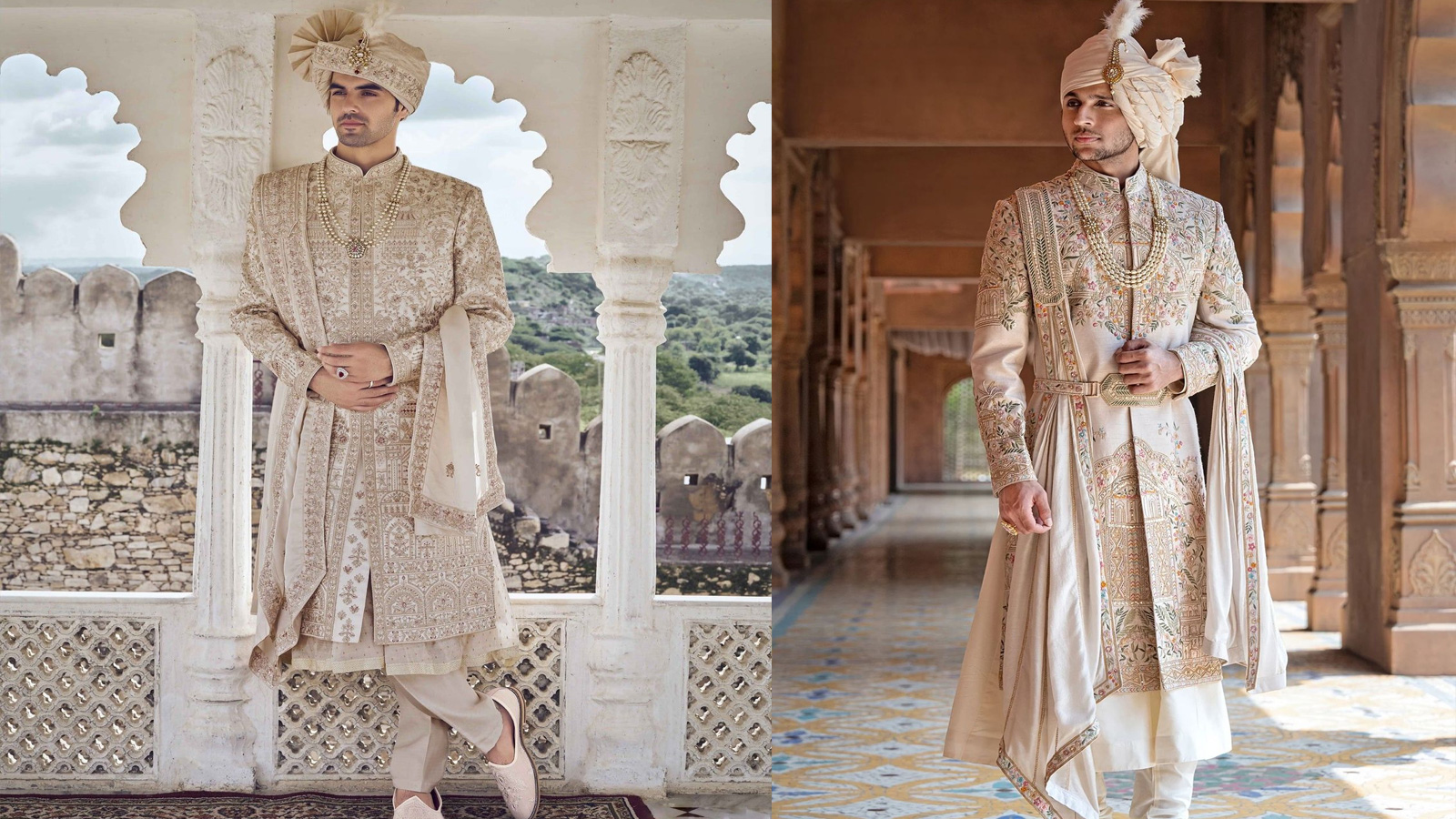 क्लासिक क्रीम एम्ब्रॉएडरी शेरवानी