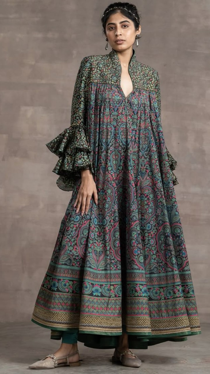 स्टाइलिंग टिप- ऐसी स्लीव बोल्ड रंग के साथ प्यारी लगती हैं। जो आउटफिट को ड्रामेटिक और एलीगेंट बनाता है।