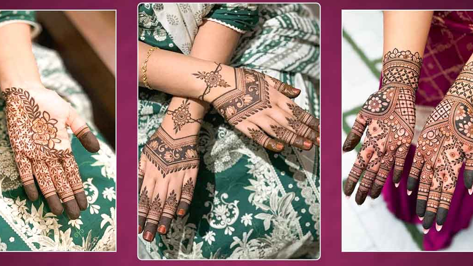 इस डिज़ाइन में कलाई के आसपास एक ब्रैस्लेट जैसी आकृति बनती है जिसमें रेखाओं से नेट पैटर्न तैयार होता है। इसमें ऊपर की ओर कुछ बेल्स और पत्तियों की डिटेलिंग जुड़ी होती है जो हाथ को पूरी तरह फेमिनिन और मॉडर्न लुक देती है। ये डिज़ाइन शरारा या गाउन के साथ बहुत जंचती है।