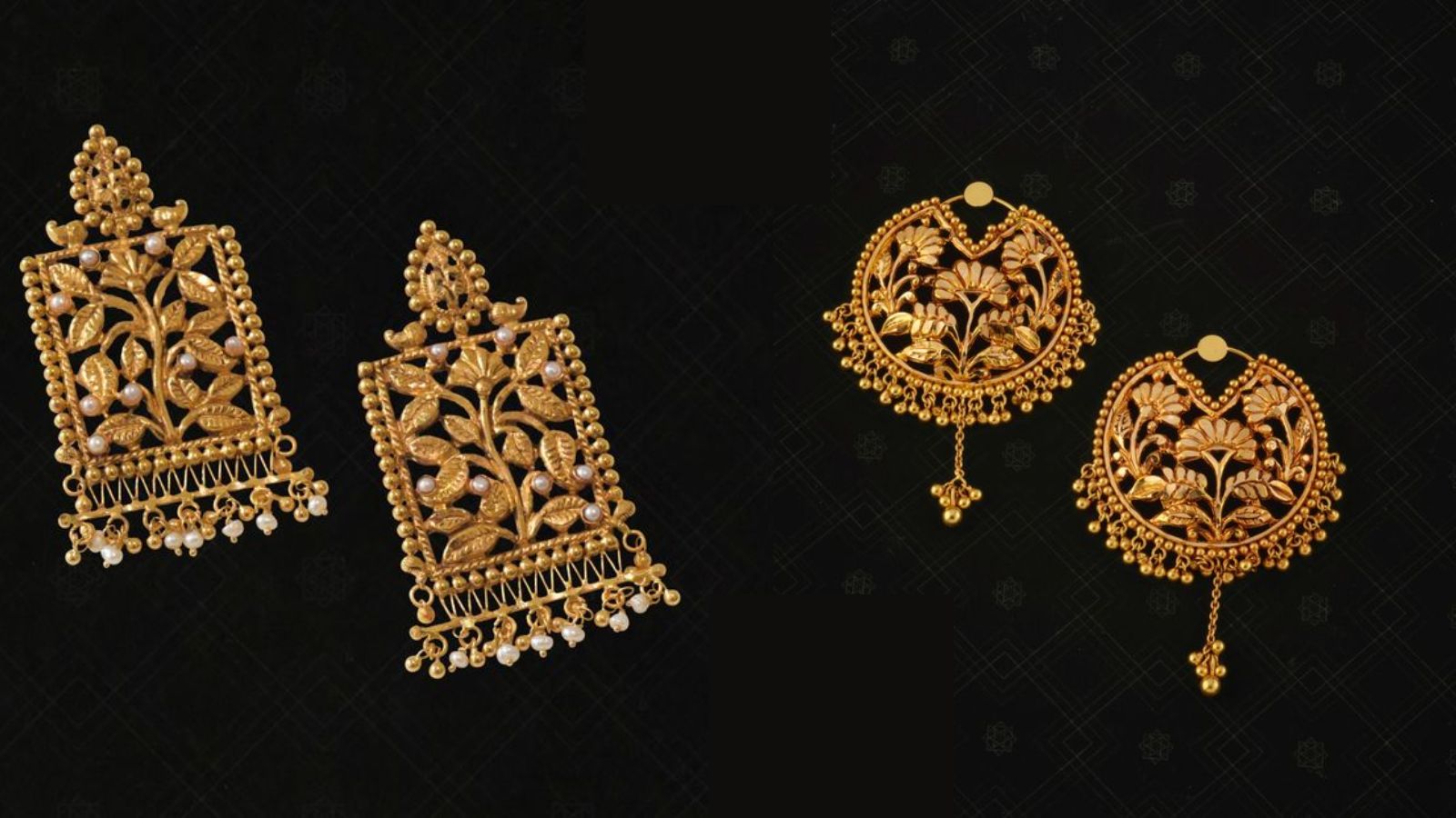 यह डिज़ाइन बंगाल की पारंपरिक सुंदरता से प्रेरित होता है। इसमें जटिल नक्काशी और गोल एवं चौकोर आकृति वाली दो डिजाइन है जो बहू के चेहरे पर चार चांद लगा देती है। ये स्टड हल्के वजन में आते हैं और पारंपरिक परिधानों के साथ खूब जंचते हैं।
