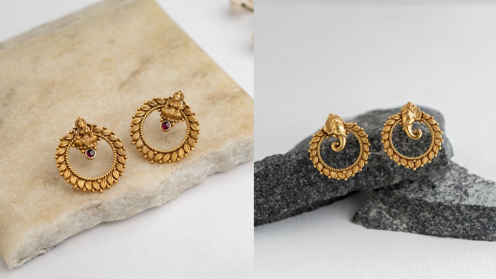 शुभ अवसरों पर लक्ष्मी और गणेश जी की आकृति वाले स्टड इयररिंग्स देना एक शुभ संकेत माना जाता है। इन इयररिंग्स में देवताओं की आकृति उकेरी गई है और यह ज्यादातर 5 से 6 ग्राम के आसपास बन जाती है। इन्हें आप धार्मिक अवसरों पर पहना जा सकता है।