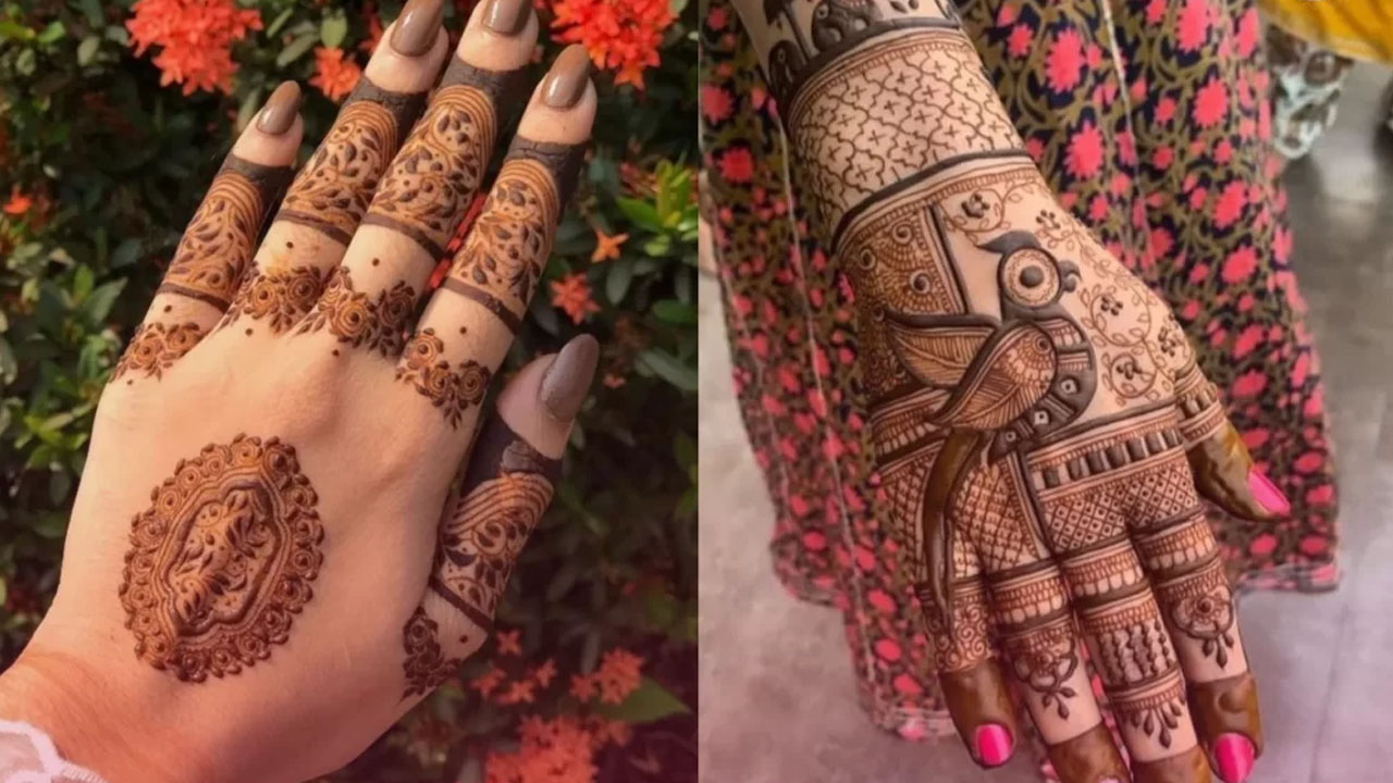 इस साल अरेबिक और इंडियन पैटर्न का मिक्स बहुत चलन में है। उंगलियों पर पतले बेल पैटर्न और हथेली पर गोल मोटिफ्स जैसे फ्लोरल मंडला, जालीवर्क और पत्तियों का मेल एक शानदार चॉइस है। आपको इसे जरूर आजमाना चाहिए।