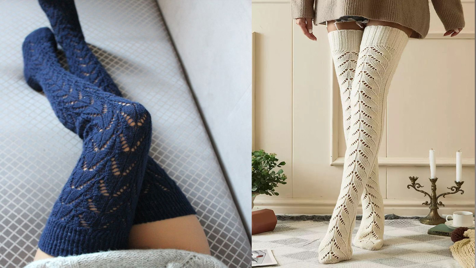 विंटर में आपके वार्डरोब में एक जोड़ा जालीदार वुलन फुल लेग सॉक्स तो होना ही चाहिए। इस तरह के सॉक्स को आप शॉर्ट ऊनी ड्रेस के साथ जोड़कर एक एलिगेंट लुक पा सकती हैं। ब्लू, व्हाइट समेत हर कलर में आपको इस पैटर्न में सॉक्स मिल जाएंगे। जिसे आप 500 से 1000 रुपए के अंदर खरीद सकती हैं।