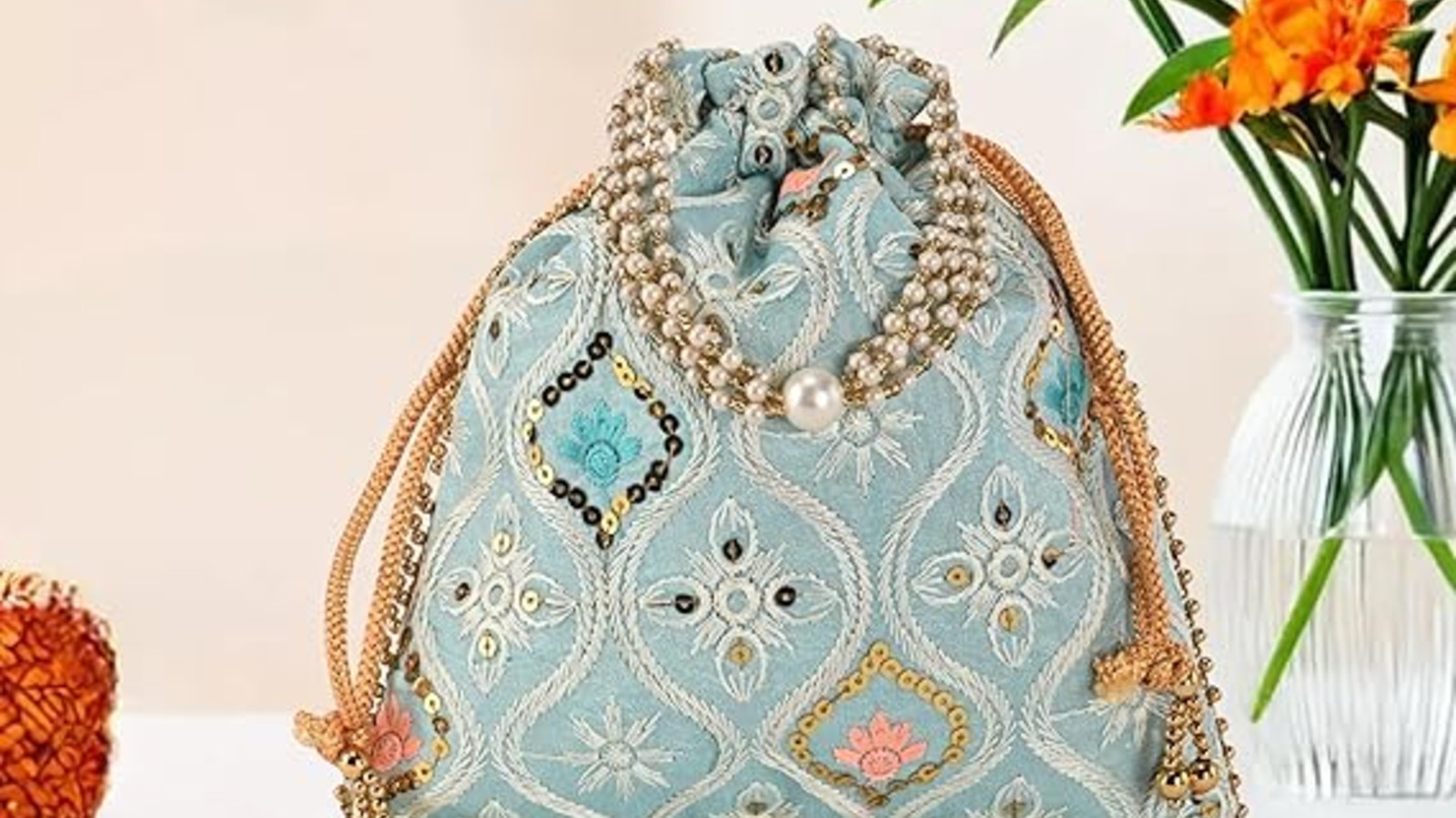 क्लच के साथ पोटली बैंग्स का जादू सिर चढ़कर बोल रहा है। आप भी साड़ी या लहंगा पहनने वाली हैं तो इसे खरीद सकती हैं। ये आजकल बॉलीवुड टाउन की हर एक्ट्रेस का पसंदीदा बना हुआ है। स्काई ब्लू कलर में आने वाले इस बैग में मोती और एंब्रॉयडरी वर्क किया गया है। यहां पर गुलाबी, गोल्डन समेत कई कलर ऑप्शन है। अमेजन पर ये 77% डिस्काउंट के साथ ₹249 में मौजूद है।