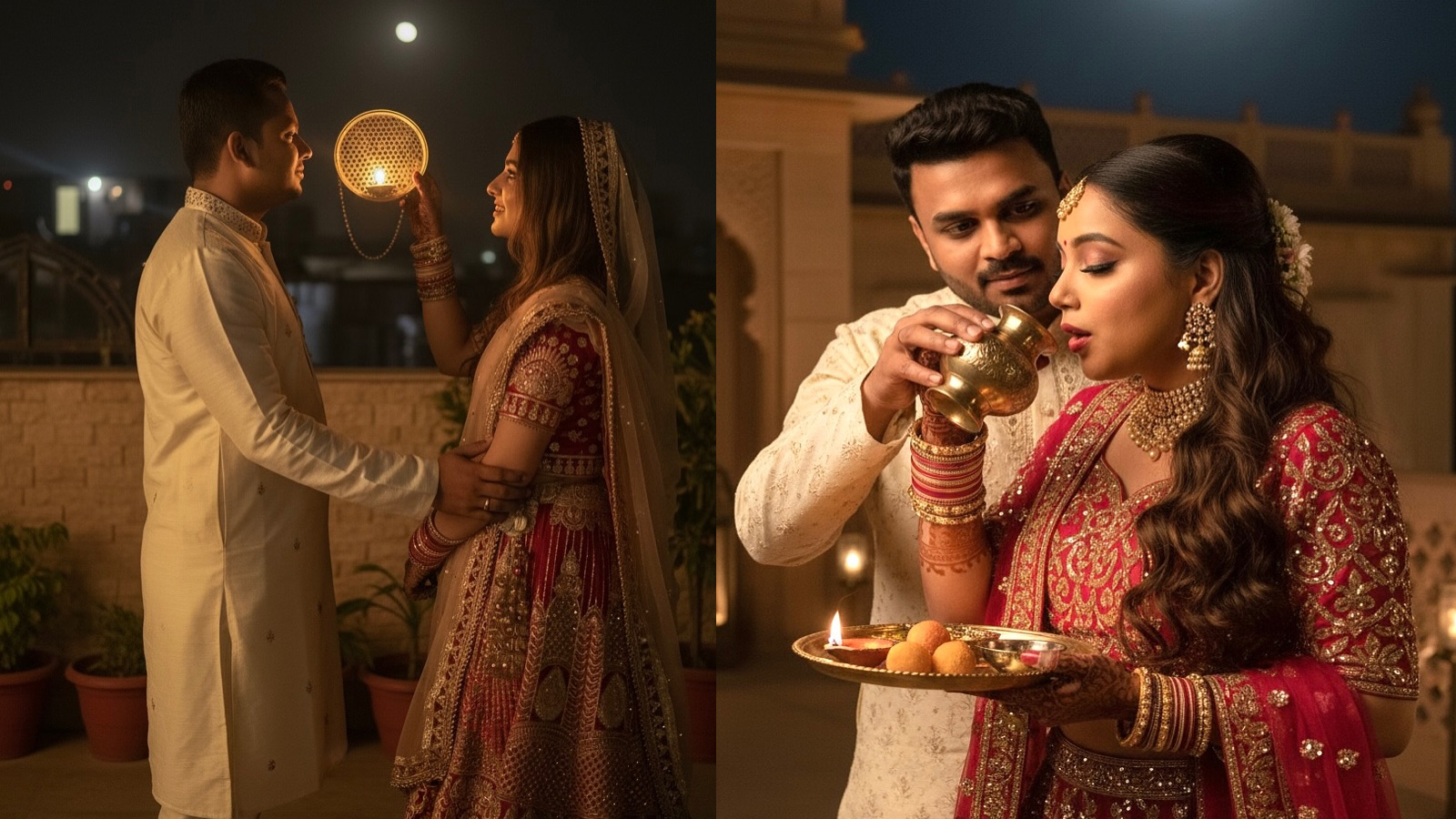 Karwa chauth Photoshoot: करवा चौथ पति की लंबी उम्र के लिए किया जाता है। इस त्योहार में पति-पत्नी का प्रेम दिखता है। इसी प्रेम को आप तस्वीरों में कैद कर सकते हैं। यहां पर हम कुछ कपल पोज दिखाएंगे, जिसे आप ट्राई कर सकती हैं।