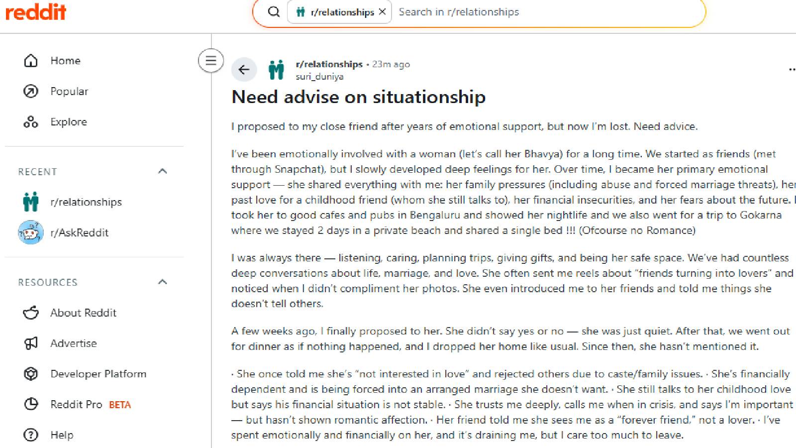 जब आप सालों तक इमोशनल सपोर्ट देने के बाद किसी दोस्त को प्रपोज करते हैं, और कोई जवाब नहीं मिलता, तो कन्फ्यूजन हो जाता है। यह कहानी बताती है कि दोस्ती, प्यार और इमोशनल डिपेंडेंसी के बीच की सीमाएं कहां धुंधली हो जाती हैं।