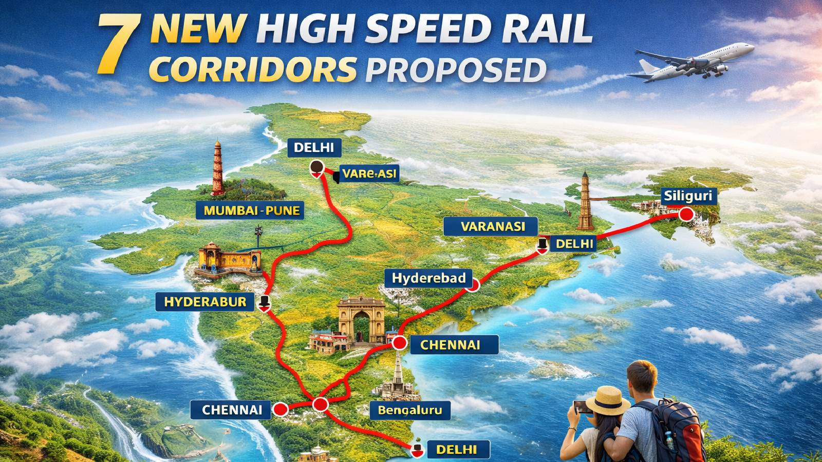 प्रमुख शहरों के बीच यात्रा को तेज और अधिक आरामदायक बनाने के लिए, सरकार ने 7 नए हाई-स्पीड रेल कॉरिडोर विकसित करने का प्रस्ताव दिया है। इनमें मुंबई-पुणे, पुणे-हैदराबाद, हैदराबाद-बेंगलुरु, हैदराबाद-चेन्नई, चेन्नई-बेंगलुरु, दिल्ली-वाराणसी और वाराणसी-सिलीगुड़ी शामिल हैं। ये कॉरिडोर न केवल यात्रा का समय कम करेंगे बल्कि व्यापार और क्षेत्रीय विकास को भी बढ़ावा देंगे।