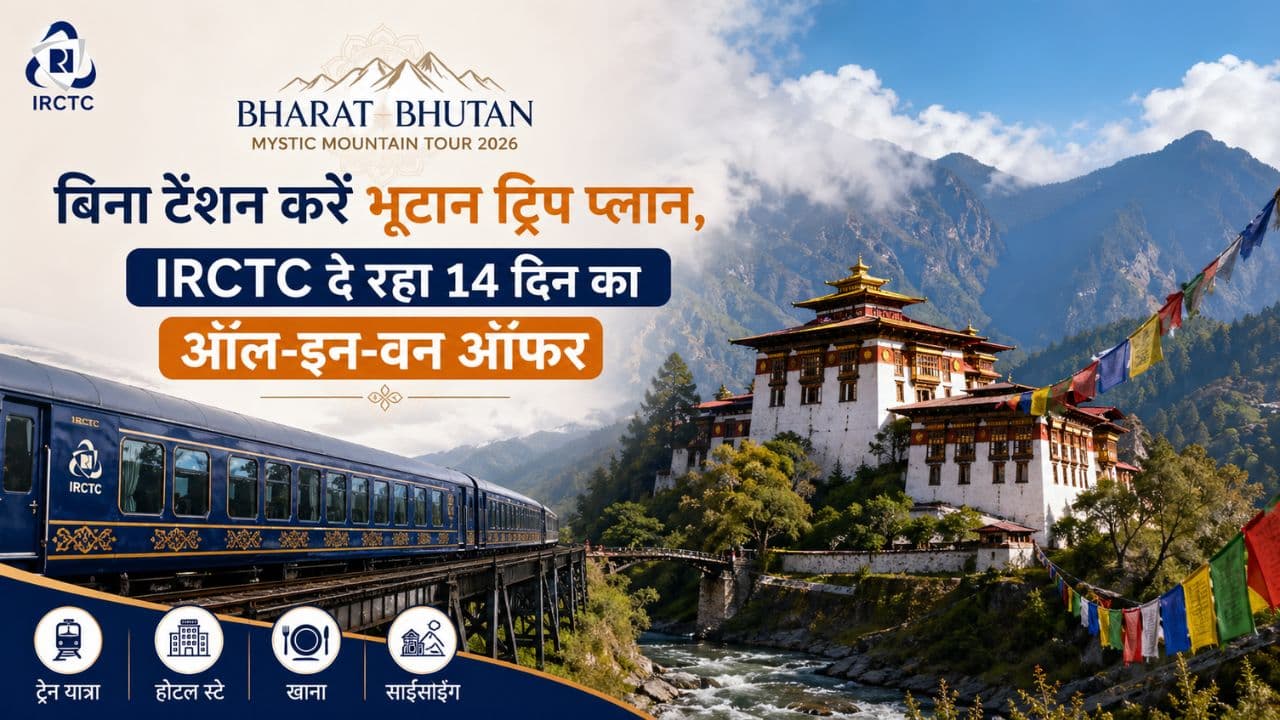 IRCTC Bhutan tour 2026: IRCTC का 14 दिन का भारत-भूटान मिस्टिक माउंटेन टूर गुवाहाटी, शिलॉन्ग, थिम्फू और पारो जैसे खूबसूरत डेस्टिनेशन कवर करता है। जानें पूरा रूट, किराया, सुविधाएं और बुकिंग डिटेल्स।
