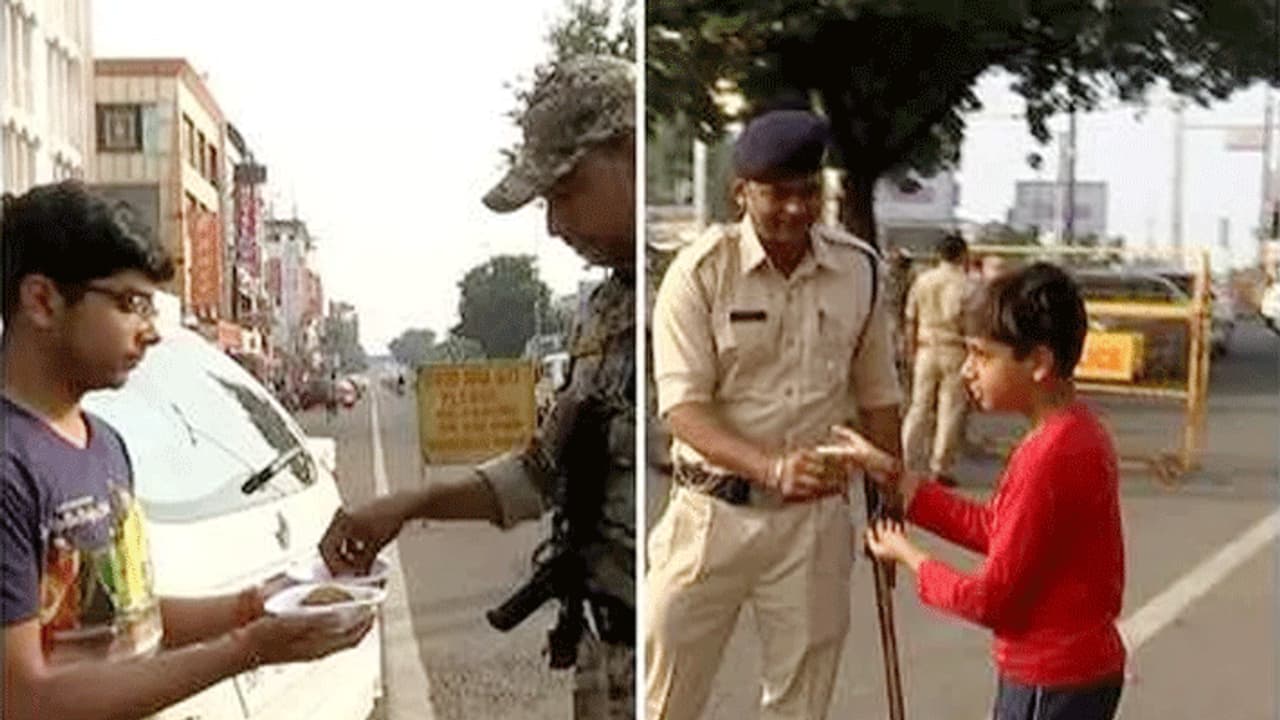 राजधानी भोपाल में शनिवार के दिन चप्पे-चप्पे पर भारी मात्रा में पुलिस बल तैनात था। पूरे शहर में धारा 144 लागू थी। इसके बाद भी दोनों मासूम अपने हाथों में बिस्किट-नमकीन और चाय लेकर निकल पड़े। जवानों ने कहा-हम लगातार ड्यूटी देकर थक गए थे। लेकिन बच्चे के प्यार ने सब भुला दिया।