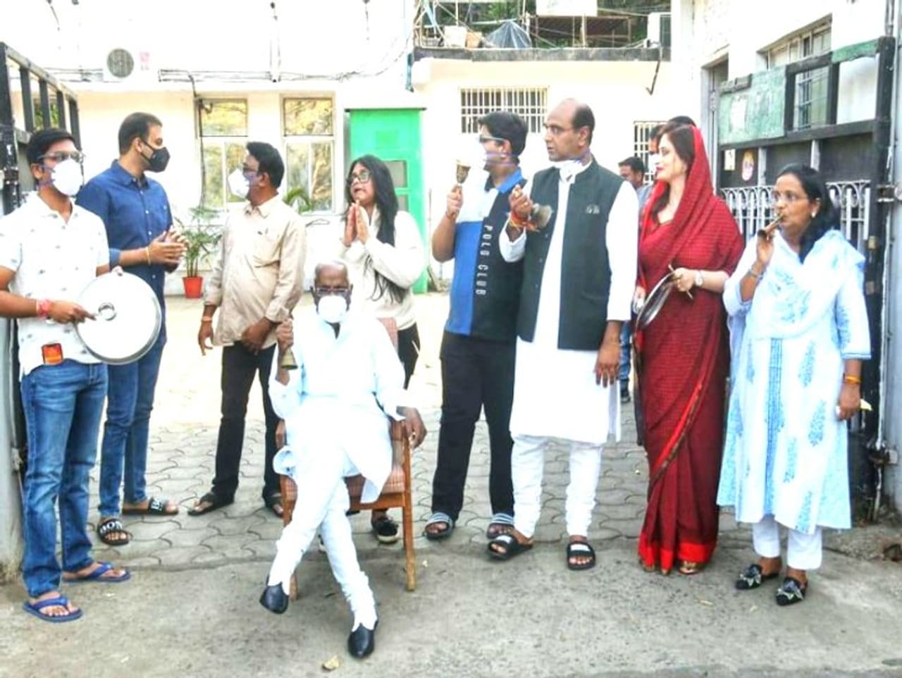 (लॉकडाउन के दौरान परिवार के साथ थाली बजाते हुए कैलास सारंग)