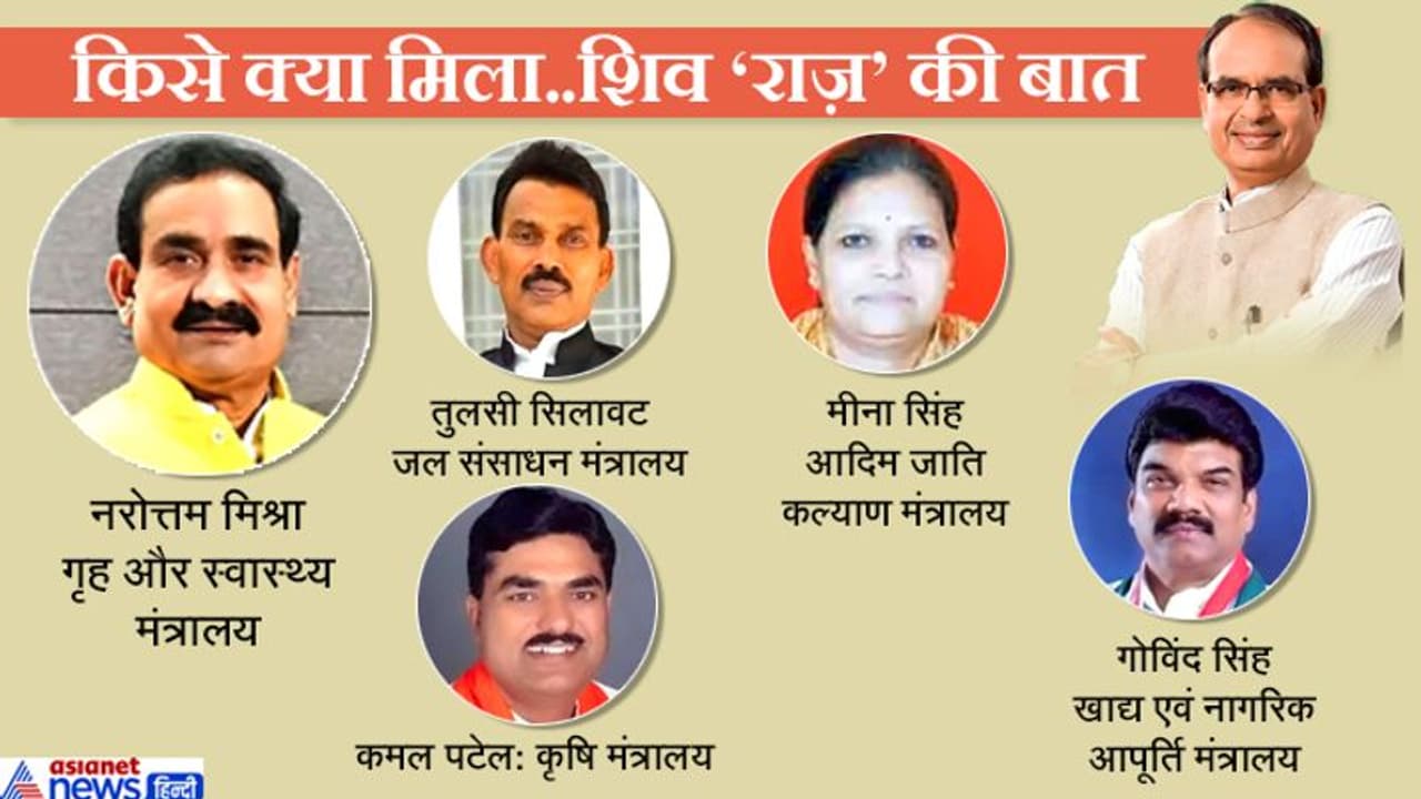 28 दिनों तक अकेले ही सरकार खींचते आ रहे शिवराज सिंह चौहान ने आखिरकार सोमवार को मंत्रिमंडल का गठन करके मंगलवार को पांचों मंत्रियों को विभाग बांट दिए हैं। विभागों के बांटे जाने में शिवराज सिंह ने बड़ी चतुराई दिखाई है। कमलनाथ सरकार को गिराने में महत्वपूर्ण भूमिका निभाने वाले नरोत्तम मिश्रा को गृह और हेल्थ जैसे महत्वपूर्ण विभाग देकर उन्हें चुनौती पर खरा उतरने का चैलेंज दिया है। वहीं, संघ के दबाव में मंत्री बनाए गए कमल पटेल को कृषि विभाग देकर नया दांव खेला है।