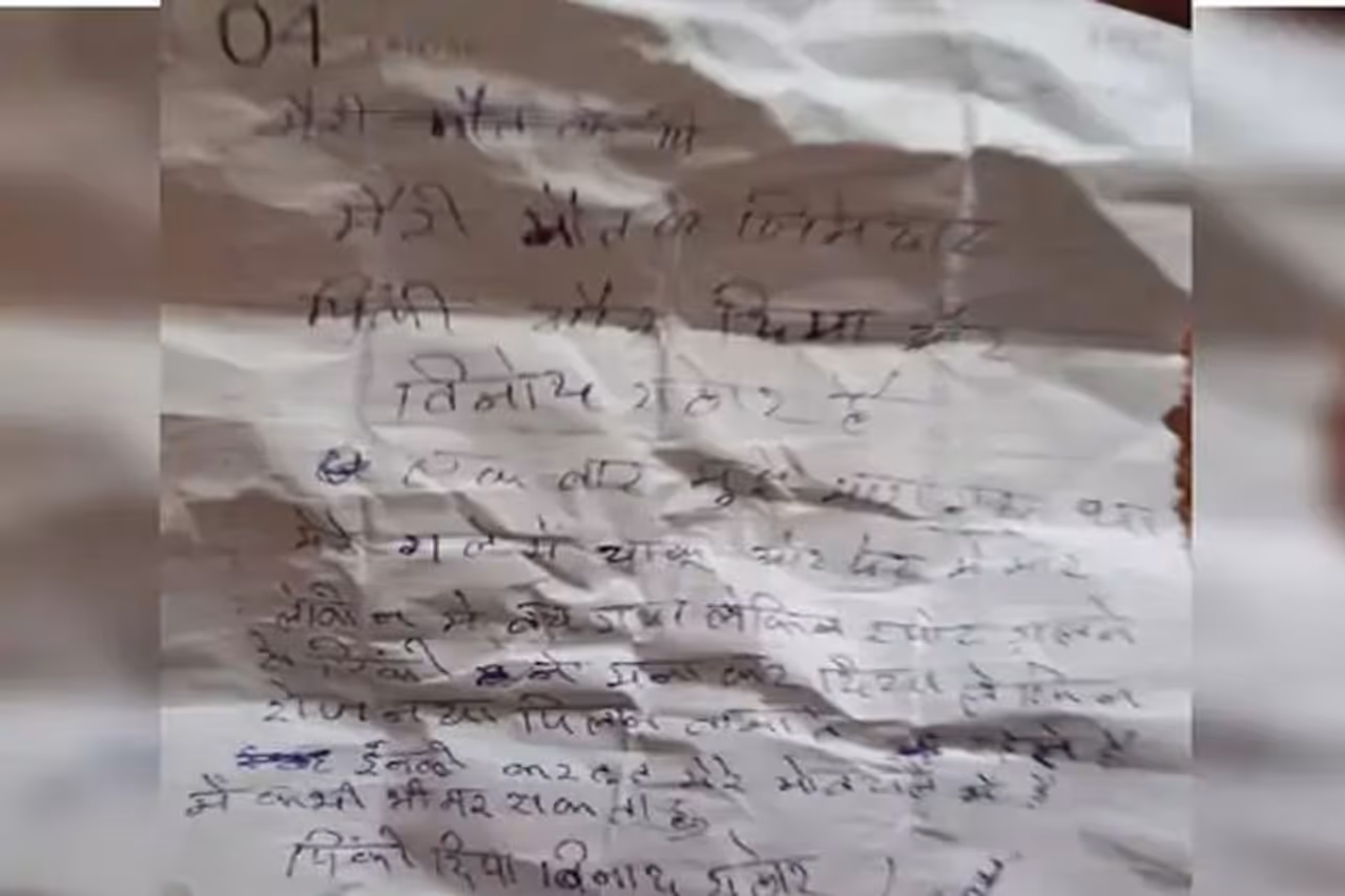 युवक के पास से सुसाइड नोट भी मिला है। दरअसल, किशन नारवे ने शुक्रवार की रात को फांसी लगाई। उसने अपनी मौत का जिम्मेदार अपनी पत्नी, साली और साली के एक दोस्त विनोद राठौर पर लगाया है। युवक ने अपने सुसाइड नोट में लिखा- मेरी पत्नी पिंकी, साली दीपा और उनका एक दोस्त विनोद राठौर मेरी मौत के जिम्मेदार हैं। यह तीनों हर दिन मुझे परेशान करने के लिए प्लान करते रहते हैं। उसने अपने सुसाइड नोट में लिखा है कि इन तीनों की करतूत मेरे मोबाइल में है।