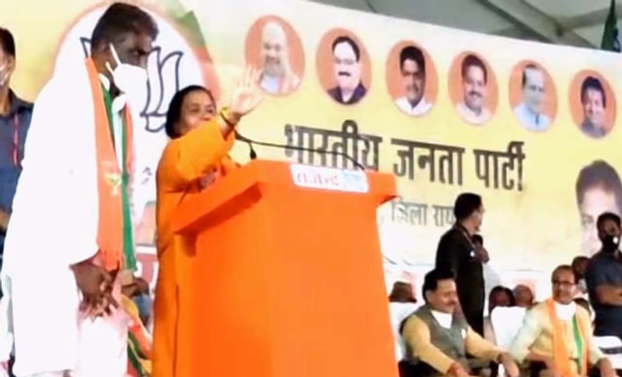 सांची/रायसेन. मध्य प्रदेश की 28 सीटों पर होने वाले उपचुनाव के मतदान के लिए अब एक हफ्ते का समय भी नहीं बचा है। चुनाव प्रचार-प्रसार भी अंतिम चरण में पहुंच गया है। ऐसे में अब दोनों पार्टियों के नेता वोट हासिल करने के लिए कुछ भी भाषण दिए जा रहे हैं। इसी बीच रायसेन जिले के सांची विधानसभा सीट के बीजेपी प्रत्याशी और शिवराज सरकार में स्वास्थ्य मंत्री प्रभुराम चौधरी के समर्थन में उमा भारती की रैली थी। जहां उन्होंने भाषणों में अपने आप की तुलना देवी देवताओं से कर डाली। वहीं प्रभुराम चौधरी को भी भगवान बता डाला।