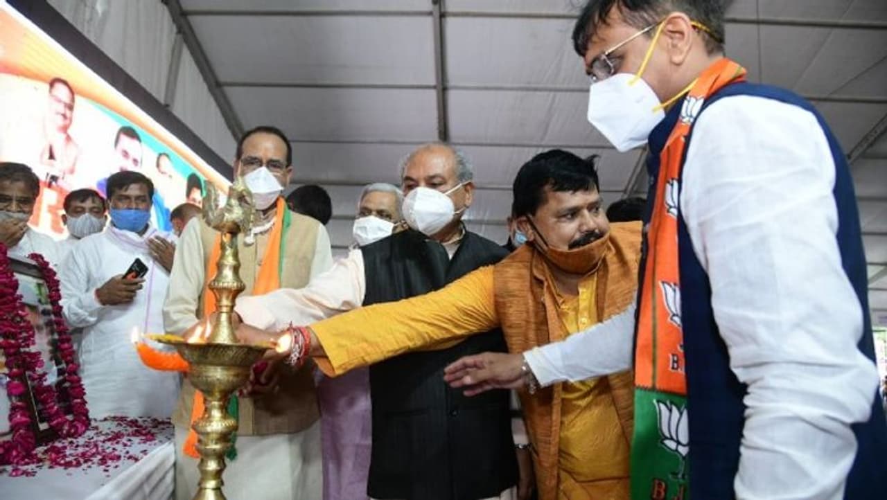 दरअसल, मध्य प्रदेश में होने वाले 27 विधानसभा सीटों पर उपचुनावों की तैयारी भाजपा ने शुरू कर दी है। इसी सिलसिले में शनिवार को ग्वालियर के फूलबाग मैदान पर एक चुनावी सभा का आयोजन हुआ। जिसमें भाजपा की सदस्यता दिलाई गई, इस मौके पर ज्योतिरादित्य सिंधिया ने 5 हजार से अधिक कांग्रेस कार्यकर्ता भाजपा में शामिल कराया। बताया जा रहा है कि ग्वालियर के 9 विधानसभा क्षेत्रों में भाजपा सदस्यता अभियान चलाएगी, जिसकी जिम्मेदारी सीएम शिवराज और सिंधिया ने ली है। बता दें कि इस कार्यक्रम में ज्योतिरादित्य सिंधिया, केंद्रीय मंत्री नरेंद्र सिंह तोमर और भाजपा के प्रदेश अध्यक्ष वी.डी. शर्मा ने शिरकत की।