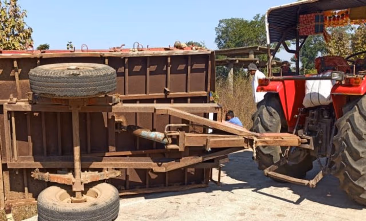 (अचानक अनियंत्रित होकर ट्रैक्टर-ट्रॉली पलट गई।)