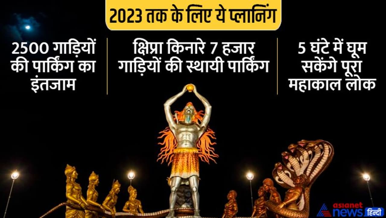 11 अक्टूबर से महाकाल मंदिर रात में बिल्कुल स्वर्ण मंदिर की तरह चमकेगा। रात में सोने की तरह चमकने वाले महाकाल लोक में श्रद्धालुओं को शिवरात्रि, नागपंचमी और सिंहस्थ जैसे पर्वो पर दर्शन के लिए 2023 तक और बेहतर इंतजाम किए जा रहे हैं। यहां हर एक घंटे में 30 हजार श्रद्धालु दर्शन कर सकेंगे। सितंबर, 2023 तक महाकाल आने वाले श्रद्धालुओं के लिए 2500 गाड़ियों की पार्किंग व्यवस्था की जा रही है। साथ ही सिंहस्थ को लेकर 7 हजार गाड़ियों की स्थाई पार्किंग व्यवस्था शिप्रा के किनारे बनाई जा रही है।