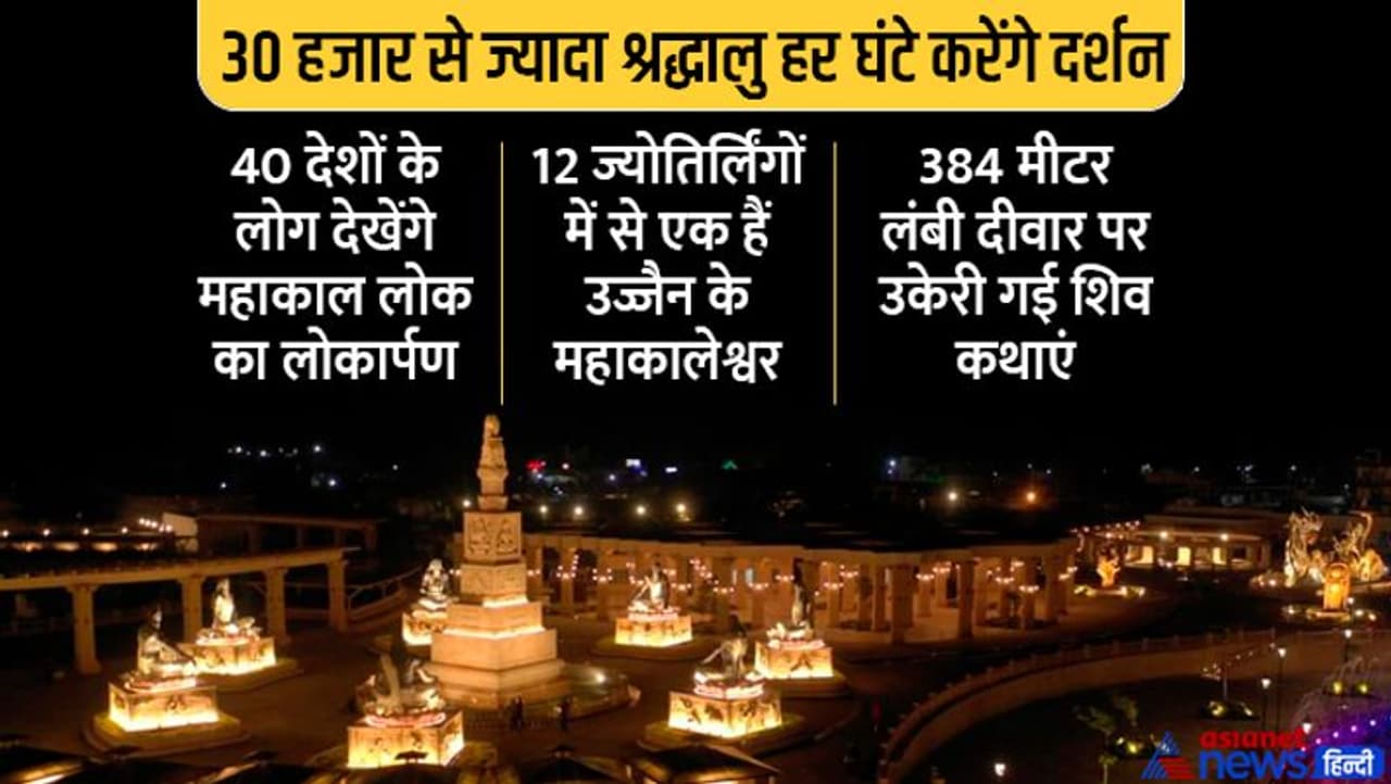 काशी के विश्वनाथ कॉरिडोर की तर्ज पर 12 ज्योतिर्लिंगों में से एक यानी उज्जैन के महाकालेश्वर में 'महाकाल लोक' (Mahakal Lok) का पहला फेज पूरा हो चुका है। प्रधानमंत्री नरेंद्र मोदी 11 अक्टूबर, मंगलवार को इसका लोकार्पण कर देश को समर्पित करेंगे। आइए जानते हैं क्या है महाकाल लोक और कैसी है इसकी भव्यता।