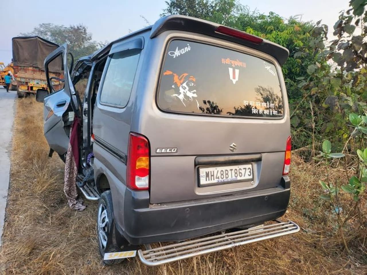 हादसा गुरुवार सुबह करीब 5 बजे रेपोली गांव के पास हुआ। हादसे की जानकारी लगते ही गोरेगांव पुलिस मौके पर पहुंची और रेस्क्यू शुरू किया। हादसे में एक 4 साल का बच्चा भी बुरी तरह घायल हुआ है। वो कार की जर्जर बॉडी में बुरी तरह फंस गया था। स्थानीय लोगों की मदद से पुलिस ने उसे जैसे-तैसे बाहर निकाला और अस्पताल पहुंचाया। बताया जाता है कि ट्रक रांग साइड से आ रहा था। इसके चलते ईको कार का ड्राइवर हादसे को रोक नहीं सका। बताया जाता है कि अचानक से सामने ट्रक आ जाने से उसकी लाइट कार ड्राइवर की आंखों पर पड़ी, जिससे वो स्टीयरिंग से अपना संतुलन खो बैठा।