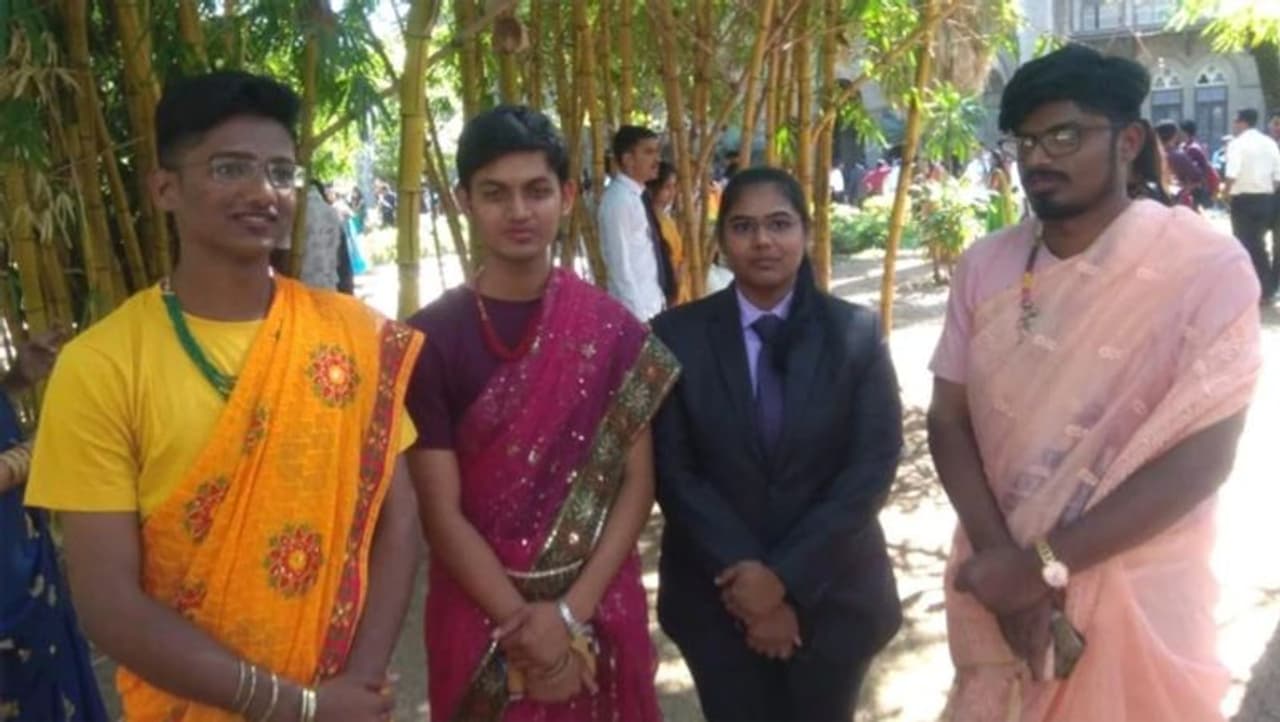 फ़र्ग्युसन कॉलेज के 3 छात्रों ने अपने वार्षिक परंपरागत परिधान दिवस पर साड़ियां पहनकर सभी को चौंका दिया।