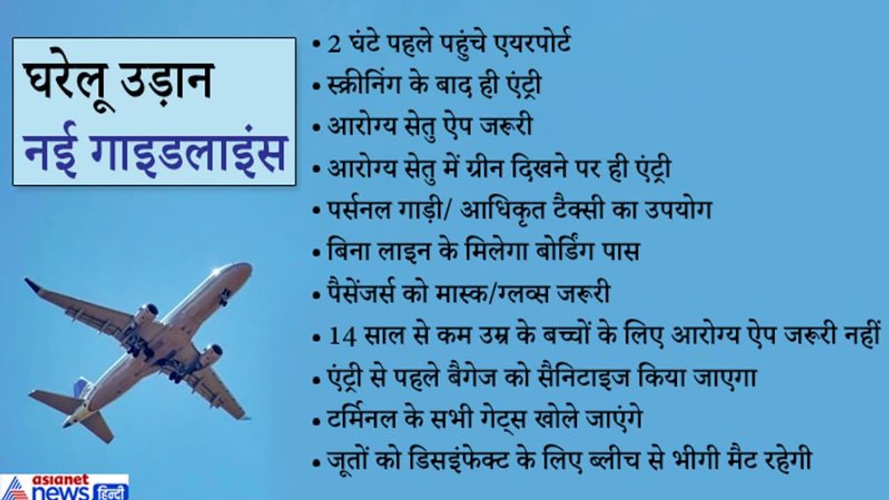 2 घंटे पहले एयरपोर्ट पहुंचना होगा : यात्रियों को विमान डिपार्चर के 2 घंटे पहले एयरपोर्ट पहुंचने को कहा गया है। टर्मिनल के अंदर वही लोग घुस सकते हैं जिनकी फ्लाइट अगले चार घंटों में हो। एयरपोर्ट टर्मिनल में दाखिल होने से पहले सभी यात्रियों के लिए ग्लब्स और मास्क जैसे सुरक्षा किट पहनना अनिवार्य होगा।