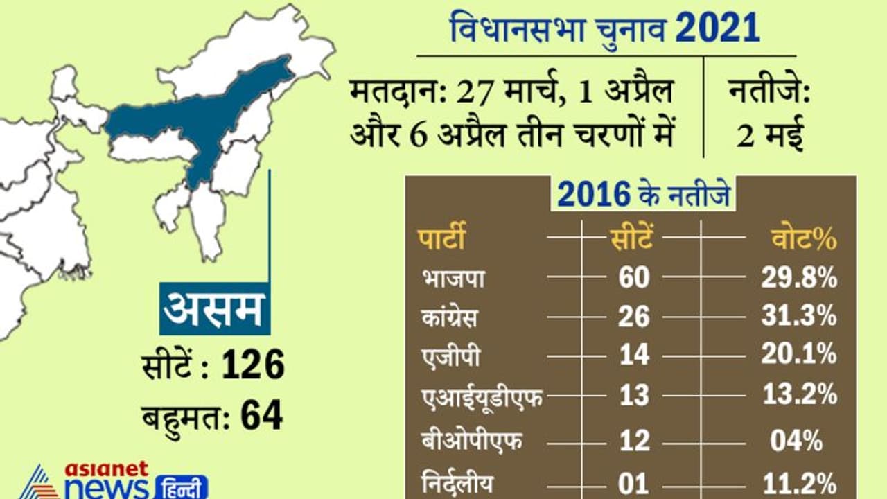 अब तक की बात करें तो असम में कांग्रेस का दबदबा रहा है। यहां सिर्फ चार बार गैर कांग्रेसी सीएम बने हैं। इनमें से दो बार एनडीए में भाजपा की सहयोगी एजीपी और एक बार जनता पार्टी और 2016 में भाजपा ने सरकार बनाई। बाकी चुनावों में कांग्रेस को ही जीत मिली।