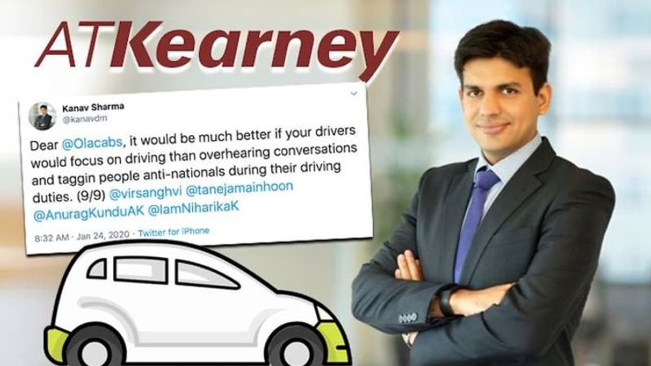 अमेरिका कंसल्टिंग कंपनियां कियरने के मैनेजमेंट कंसलटेंट कानव शर्मा ने शुक्रवार को एक ओला कैब के ड्राइवर की शिकायत करने के लिए कई सारे ट्वीट किए। दरअसल, कानव जिस ओला कैब में सफर कर रहे थे, उसका ड्राइवर नागरिकता कानून समेत केंद्र सरकार की कई सारी नीतियों का तारीफ कर रहा था।