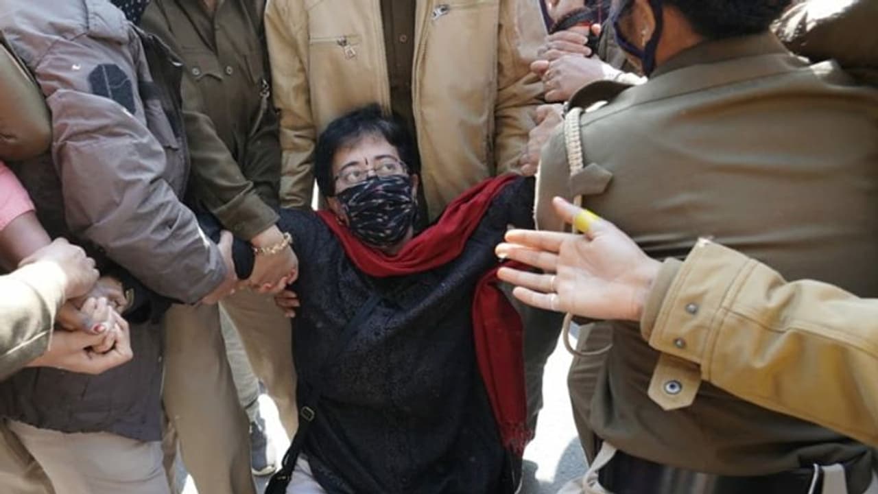 अतिशी मार्लेना ने कहा, भाजपा शासित नार्थ एमसीडी में जो ढाई हजार करोड़ का घोटाला हुआ है, हम चाहते है कि उसकी सीबीआई जांच हो। लेकिन जिस तरह से एलजी साहब ने यहां छावनी बना रखी है, उससे साफ है कि वो भाजपा नेताओं को बचा रहे हैं। अतिशी के अलावा विधायक राघव चड्ढा, संजीव झा, कुलदीप कुमार और ऋतु राज भी हिरासत में लिया गया है।