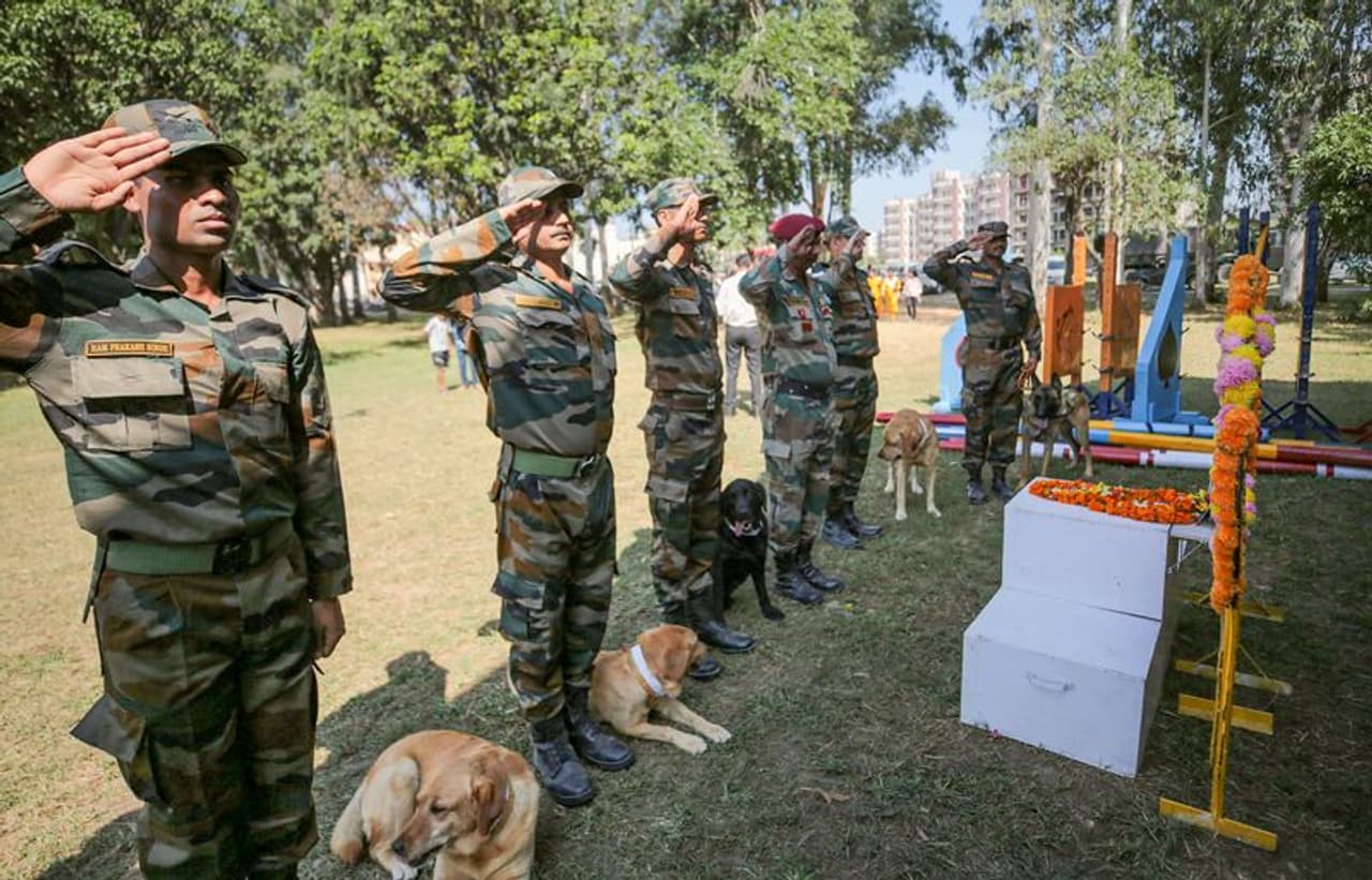 श्रीनगर. जम्मू-कश्मीर के अनंतनाग जिले में इस सप्ताह की शुरुआत में आतंकवादियों के साथ हुई मुठभेड़ के दौरान घायल योद्धा डॉग जूम(canine warrior Zoom) गुरुवार(13 अक्टूबर) को नहीं रहा। आतंकवादियों के साथ बहादुरी से लड़कर शहीद हुए 'जूम' को सेना ने शुक्रवार को श्रद्धांजलि दी।