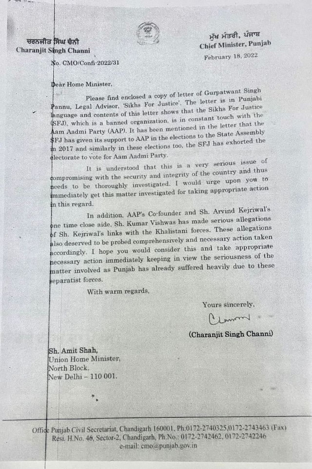 चरणजीत सिंह चन्नी ने ट्वीट किया था कि पंजाब के मुख्यमंत्री के रूप में मैं प्रधानमंत्री नरेंद्र मोदी से अनुरोध करता हूं कि कुमार विश्वास (Kumar Vishwas) ने वीडियो में जो बातें कही हैं, उसकी जांच कराएं। राजनीति एक तरफ, पंजाब के लोगों ने अलगाववाद से लड़ते हुए भारी कीमत चुकाई है। पीएम को हर पंजाबी की चिंता दूर करने की जरूरत है। इसके जवाब में गृहमंत्री अमित शाह ने चरणजीत सिंह चन्नी को पत्र लिखा है।