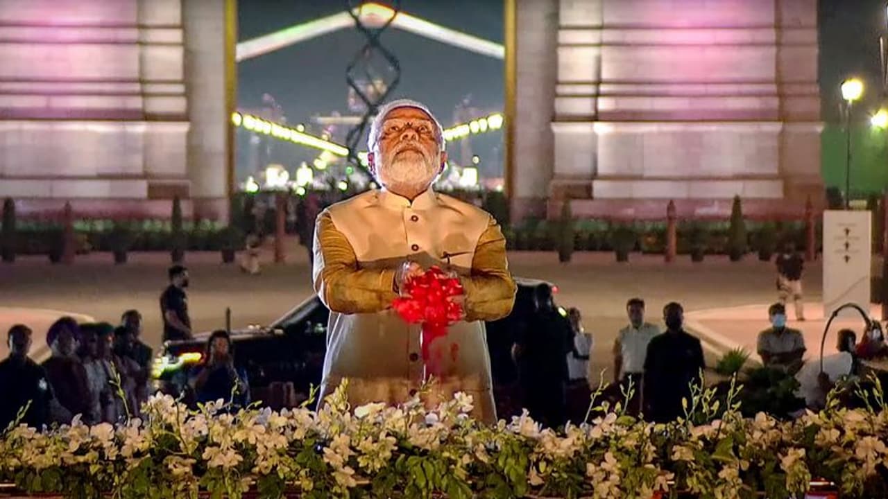 इंडिया गेट पर नेताजी सुभाष चंद्र बोस की प्रतिमा का अनावरण करने के बाद पीएम मोदी ने पुष्पांजलि अर्पित किया।