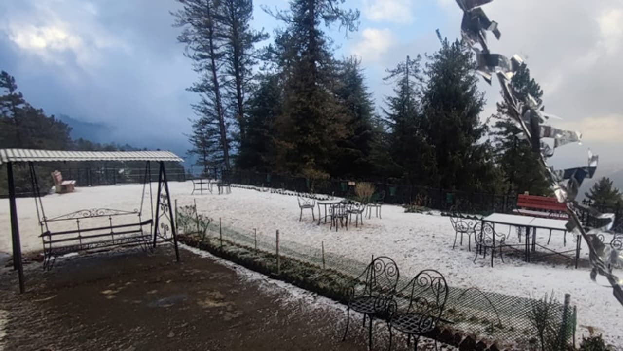 IMD के अनुसार, हिमाचल प्रदेश में जनजातीय इलाकों और ऊंचाई वाले इलाकों में हल्की से मध्यम बर्फबारी हुई, जबकि मध्य और निचले पहाड़ी इलाकों में रुक-रुक कर बारिश हुई। तस्वीर-हिमाचल प्रदेश: शिमला के नारकंडा में बर्फबारी। फोटो क्रेडिट-ANI